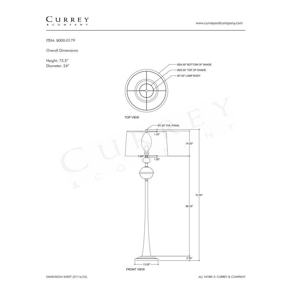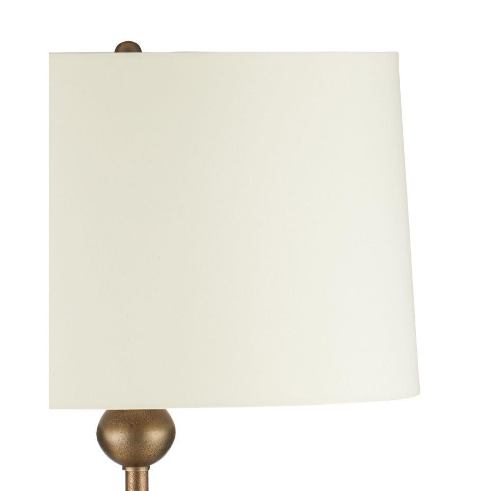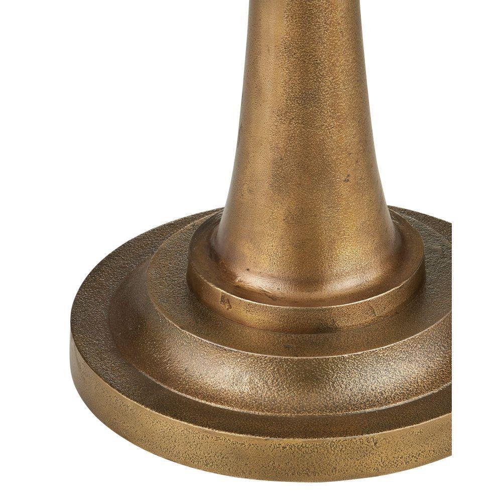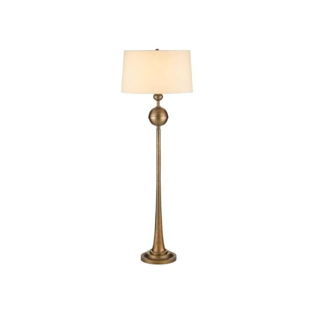 The Currey & Company Boullee Floor Lamp is crafted from cast aluminum in an antique brass finish with a trumpet-shaped lower body.