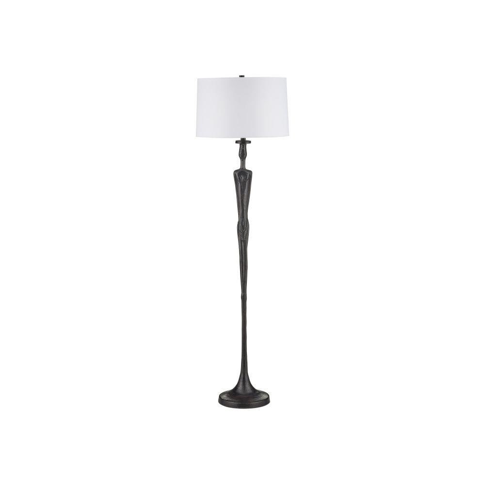 The Currey & Company Mirage Floor Lamp is made of cast aluminum in a dark brown finish in the shape of a slender, elongated torso.