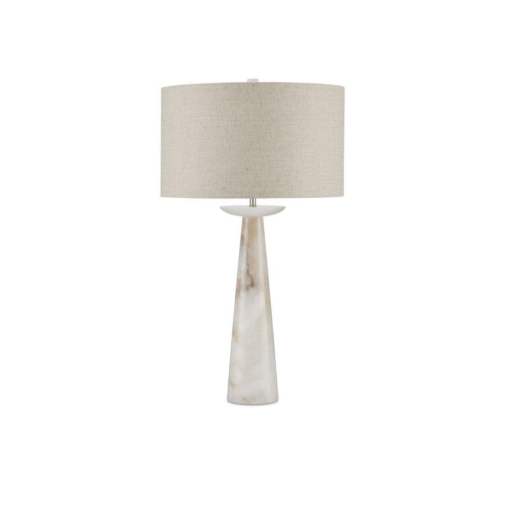 The beauty of natural stone brings the Pharos Alabaster Table Lamp an exquisite personality. The graceful shape of this dreamy table lamp was conceived by Tom Caldwell, who admits this is one of his all-time favorite pieces. Though the shape is simple and traditional, the production of this lamp requires the most modern equipment. The stone is quarried from a mine near the Taj Mahal and the factory that hones it originally made trinkets for visitors to the famed palace. The Pharos is topped with a natural linen shade.