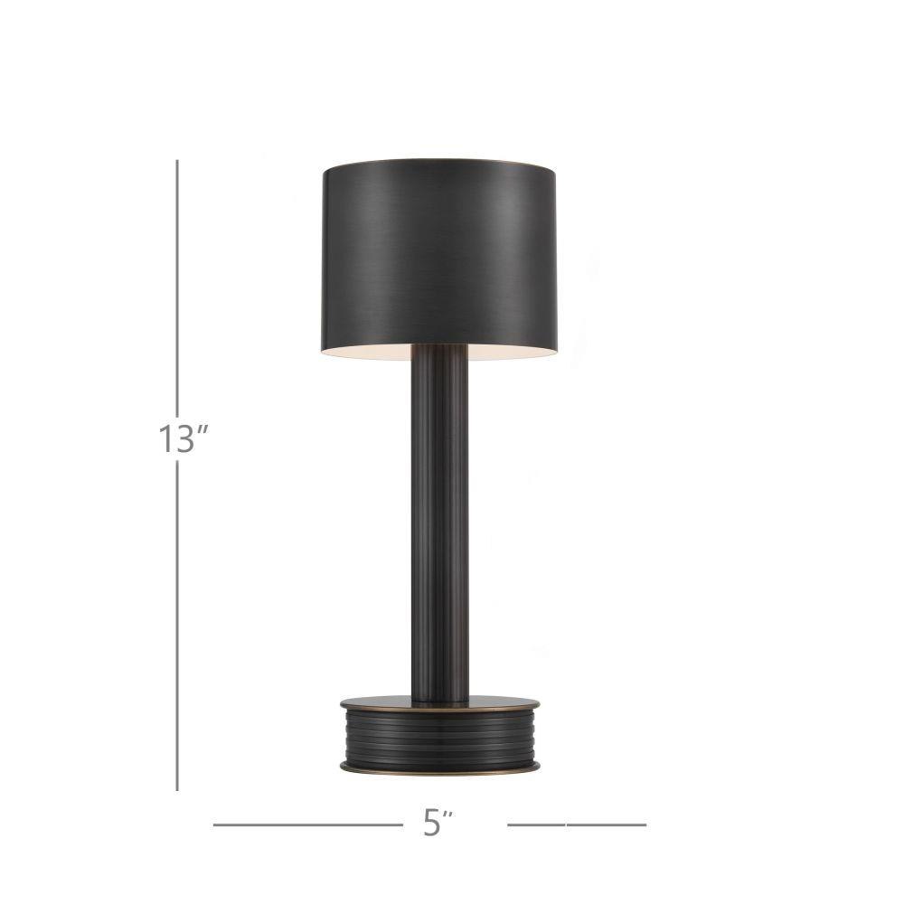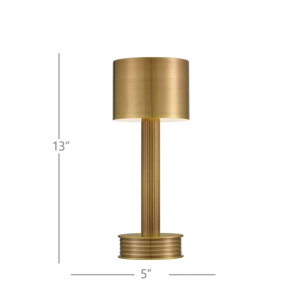 The Traverse Brass Cordless Table Lamp is a gold lamp that moves around easily. The metal lamp in a polished brass finish is petite in size, and its base holds the on/off switch. The matching metal shade has the same brilliant sheen as the rest of it. To recharge, simply place the Sortie on a separate charging pad.