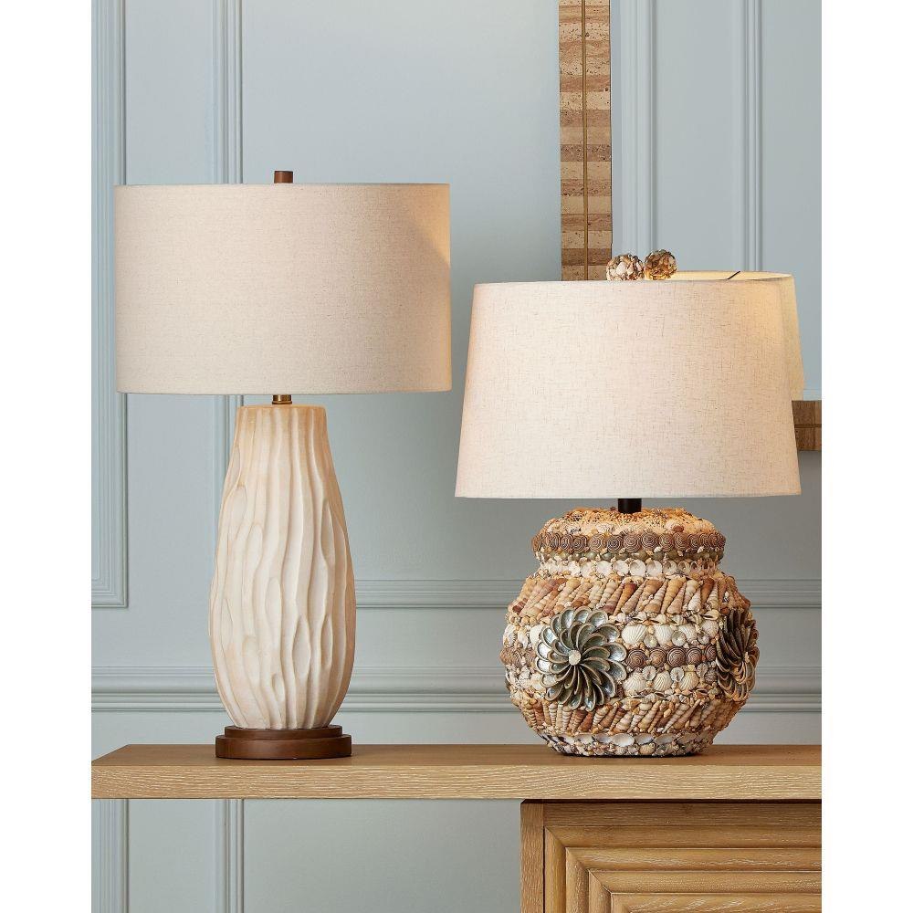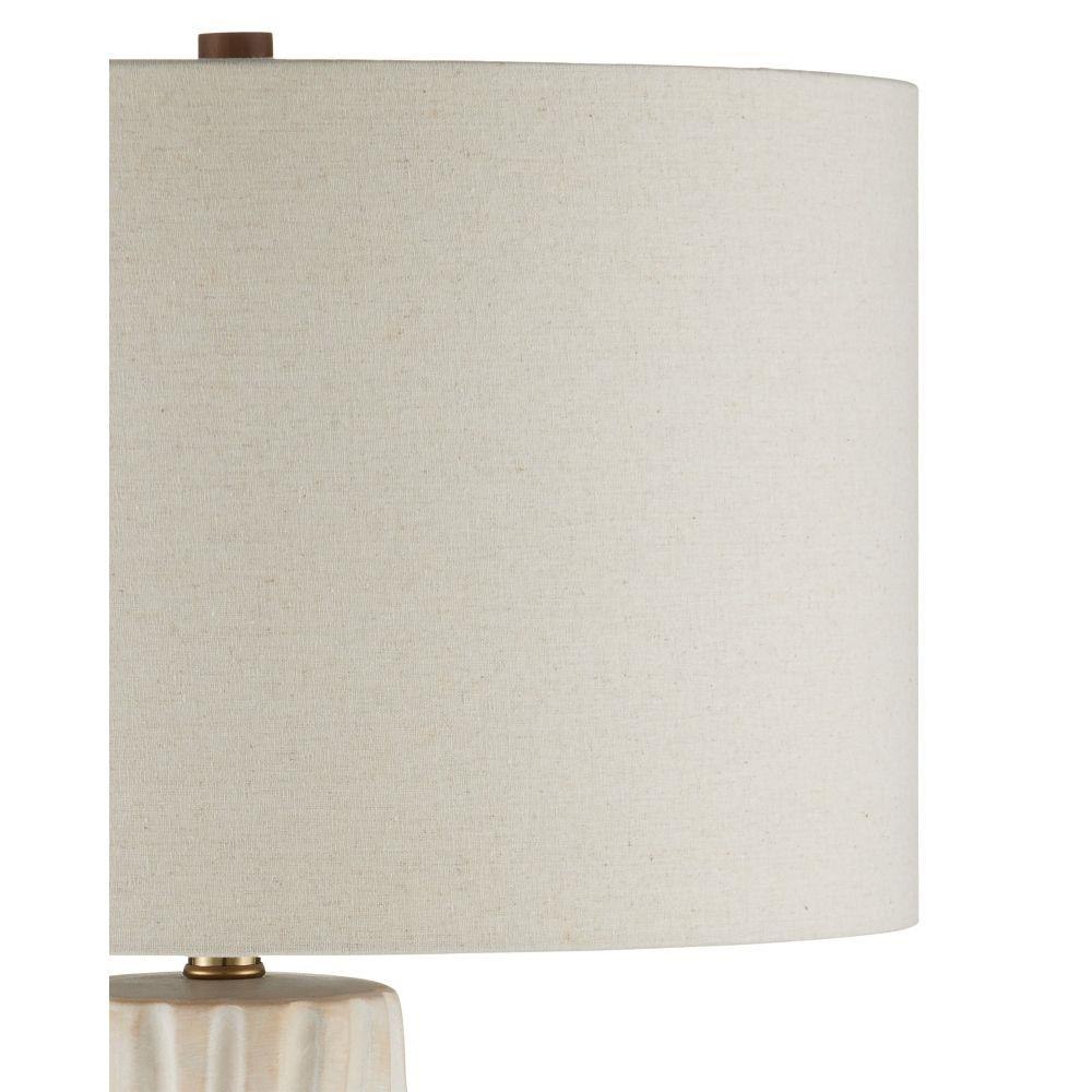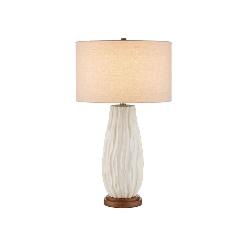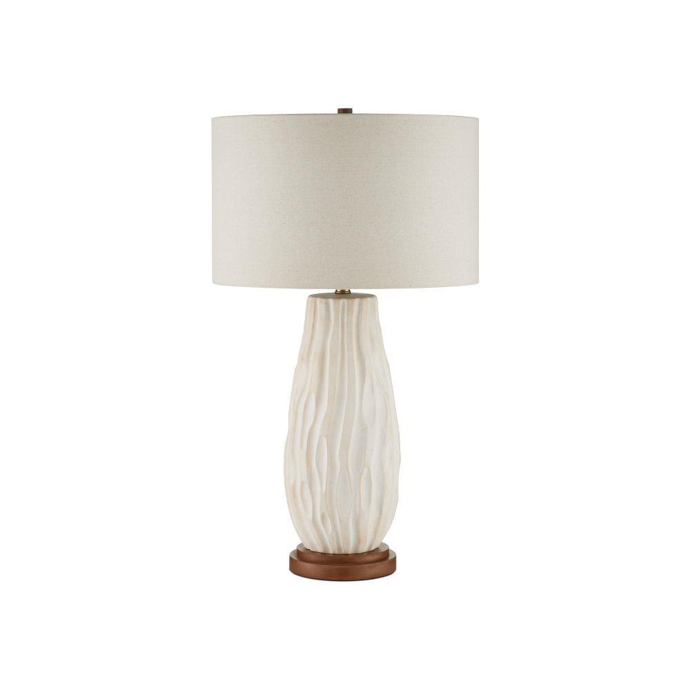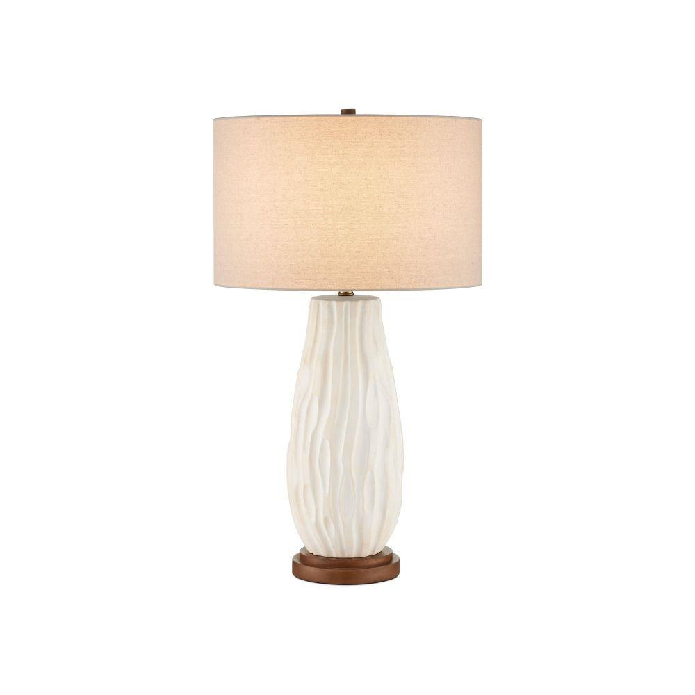 The Currey & Company Water-borne White Table Lamp has flowing peaks and valleys made of ceramic covered in a creamy off-white glaze.