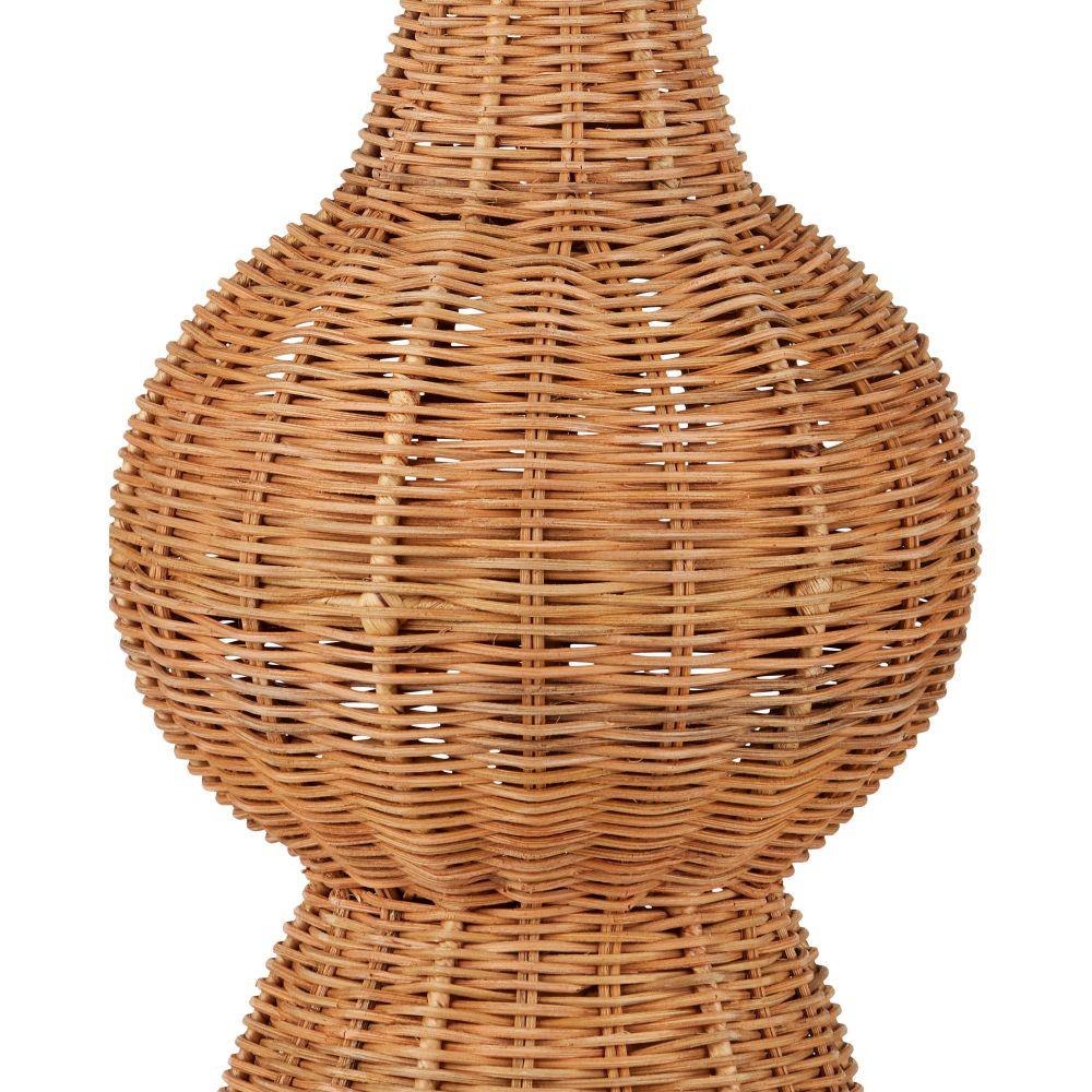 • Includes a flared empire shade made of thicker rattan.