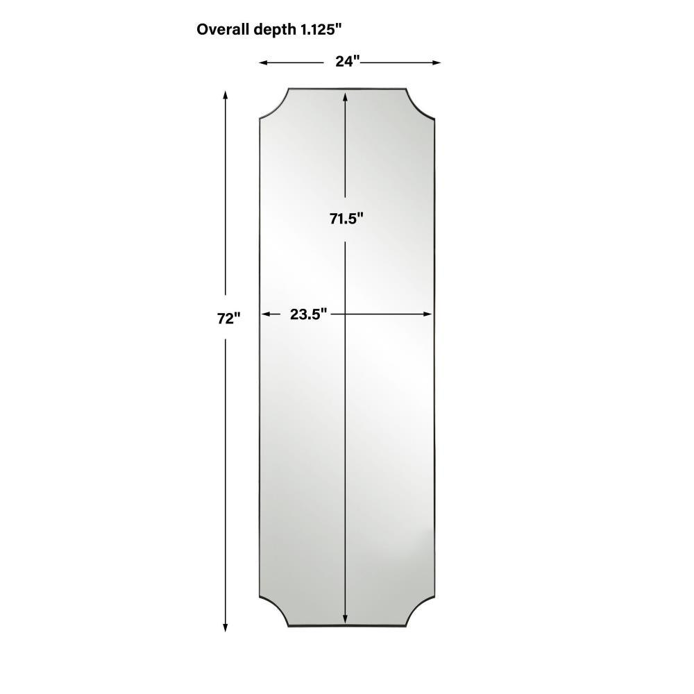 A Stylish Take On Updated Traditional Style, This Dressing Mirror Features A Stainless Steel Frame Finished In A Polished Nickel With Scalloped Corner Detailing. May Be Hung Horizontal Or Vertical.