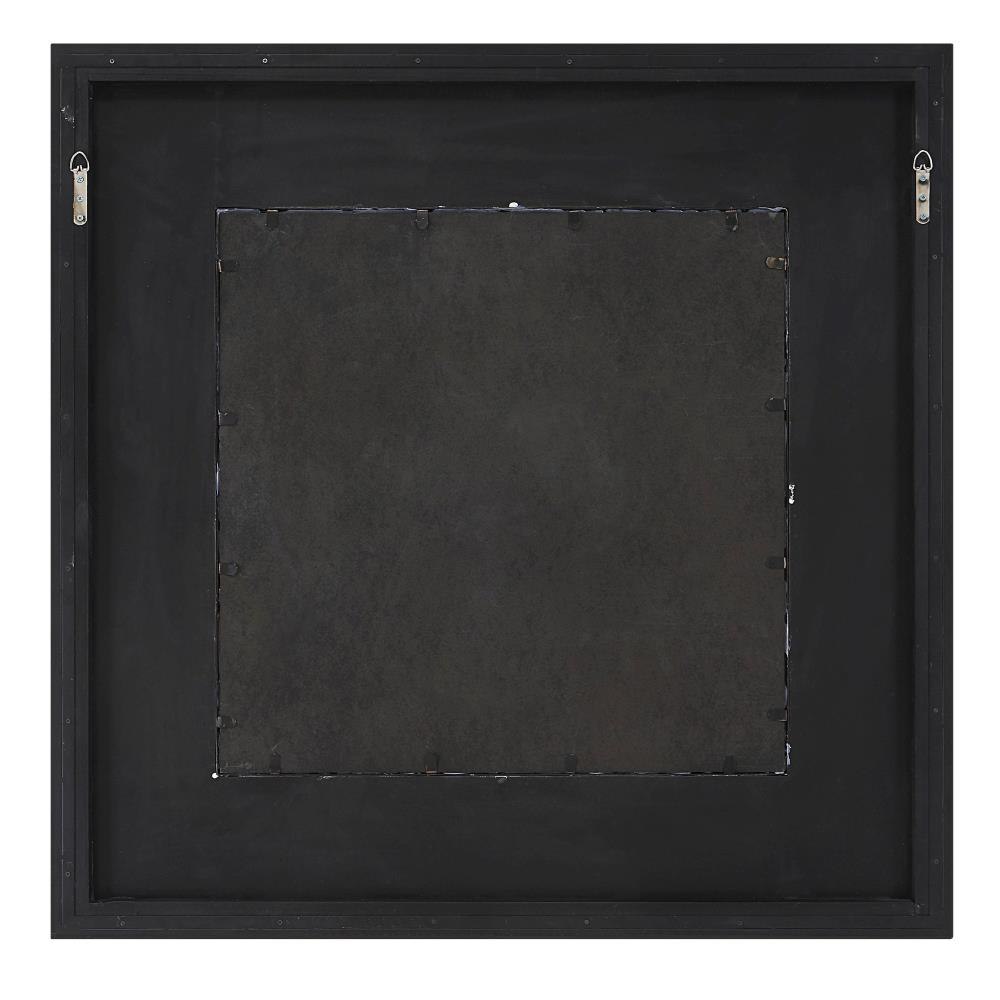 Rustic With A Twist, This Square Mirror Is Constructed From Solid Wood In A Heavily Distressed Finish With Aged Whitewash. Iron Details Are Finished In Aged Gold. The Mirror Features A Generous 1 1/4" Bevel.