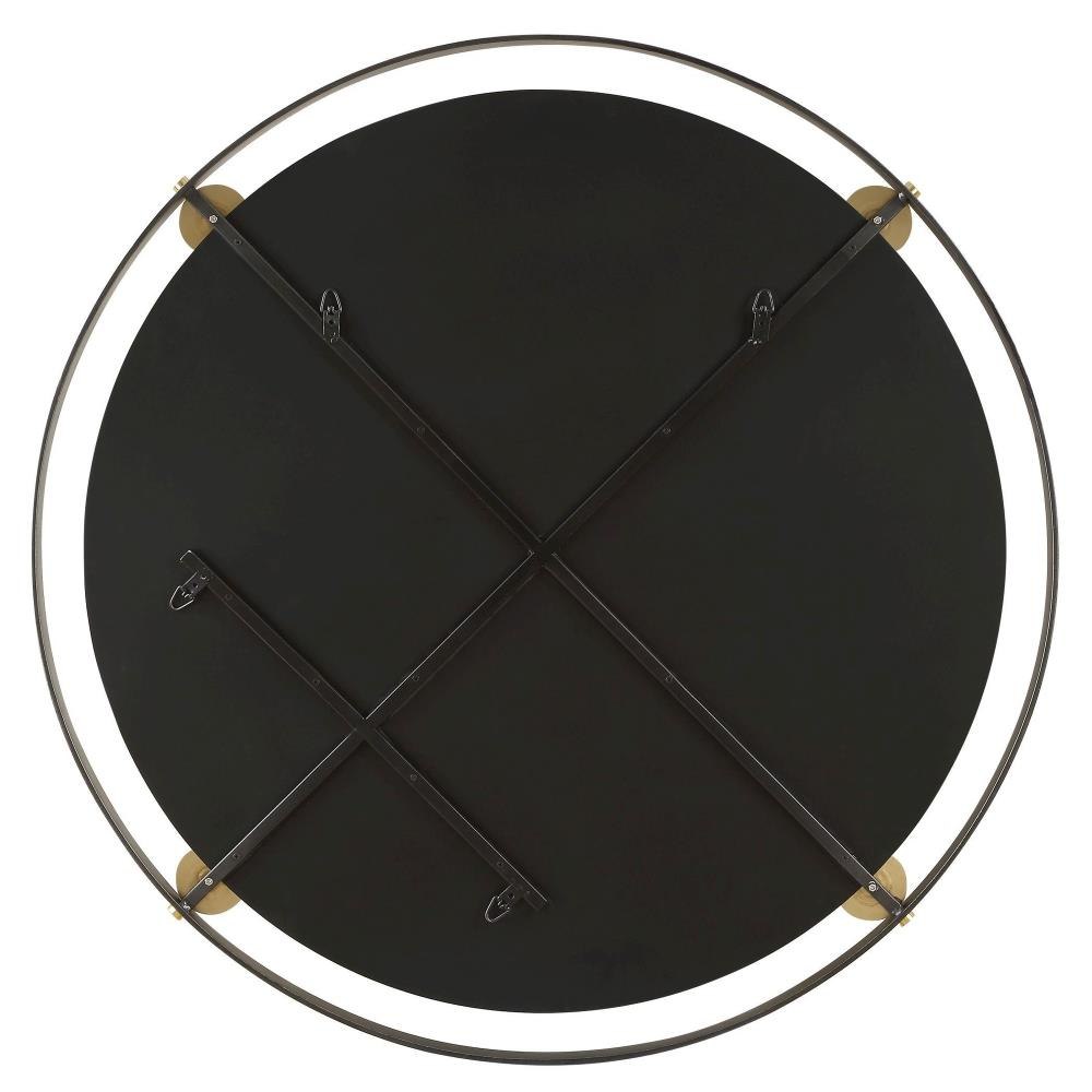 This Round Mirror Features A Hefty Dark Bronze Iron Frame That Exudes Contemporary Charm, While Plated Brass Medallions Add A Touch Of Traditional Elegance. Suspended Within This Exquisite Frame Is A Polished Edge Mirror, Reflecting A Blend Of Sophistication And Functionality.
