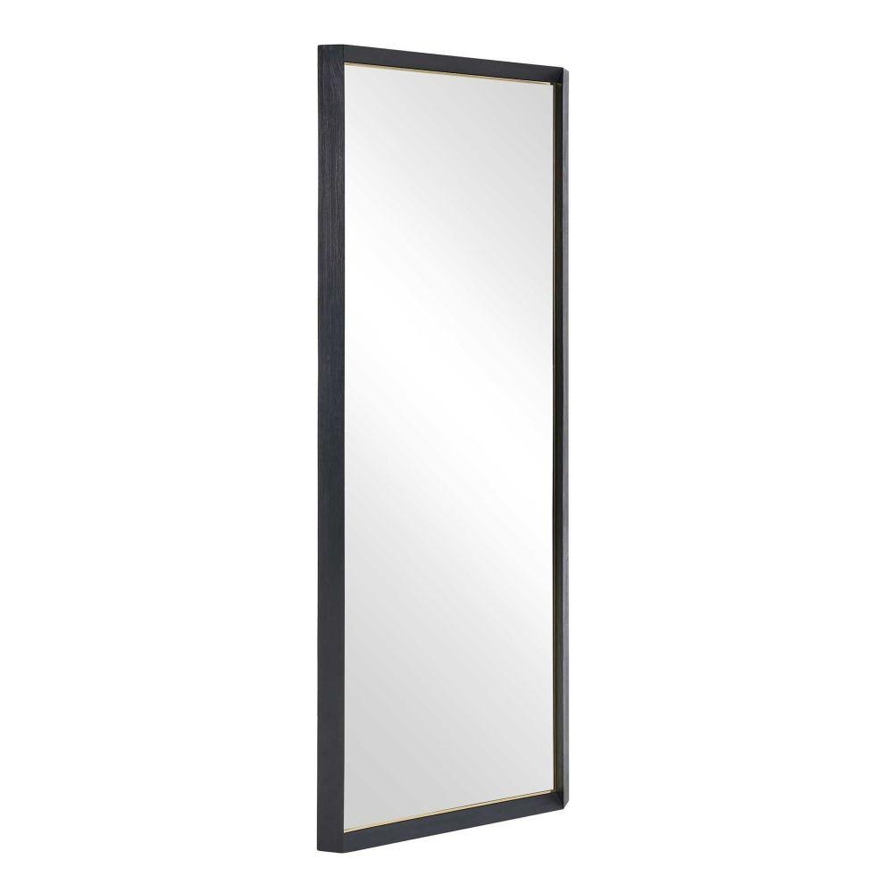 The Stenton Tall Mirror Features A Solid Wooden Frame With Angled Detailing, Finished In Sleek Black, Accented With A Petite Plated Gold Inner Ledge. May Be Hung Horizontal Or Vertical.