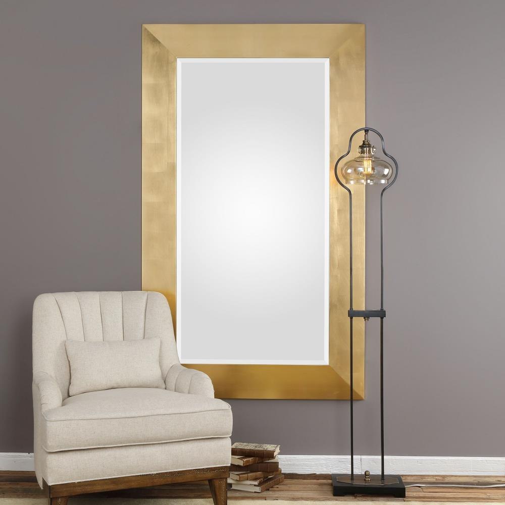This Solid Pine Frame Features A Sleek Design Finished In A Hand Applied Gold Leaf. Mirror Features A Generous 1 1/4" Bevel. May Be Hung Horizontal Or Vertical.