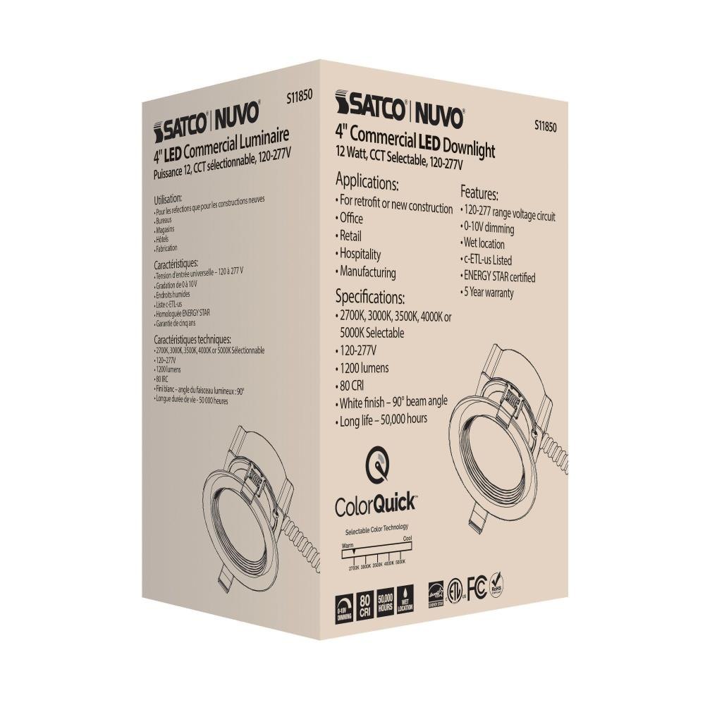 Satco's S11850 12 watt commercial LED downlight offers versatility and functionality in commercial applications. The round fixture in white finish is a practical solution for energy efficient lighting. This dimmable, recessed downlight is CCT selectable, offering you 50,000 hours of warm to cool white light.