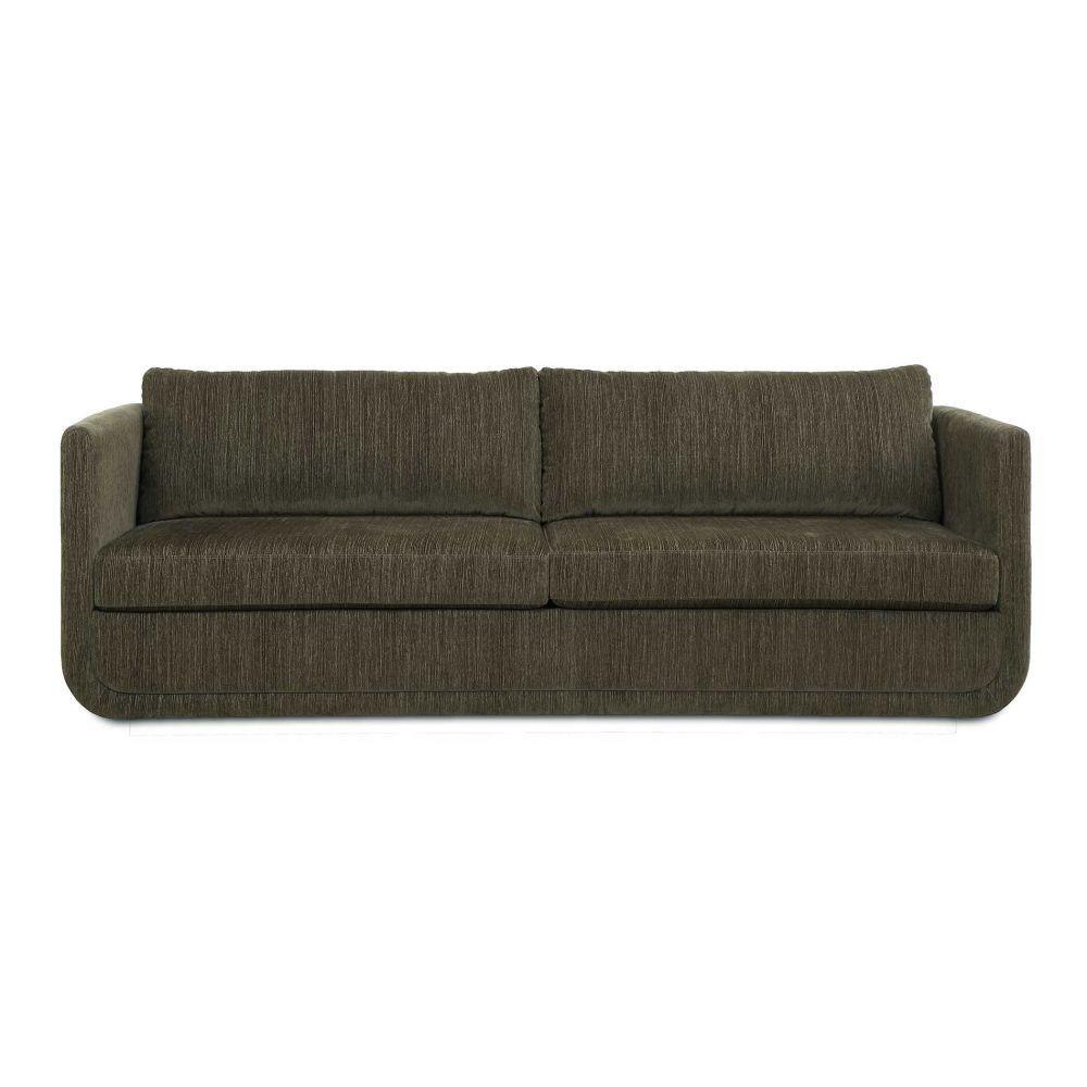 Curves Abound Creating Style And Ease, The Abound Sofa Features A Rounded Frame That Cradles The Base, Resting On A Hidden Plinth. Fully Upholstered In A Rich Textured Chenille In Herb.