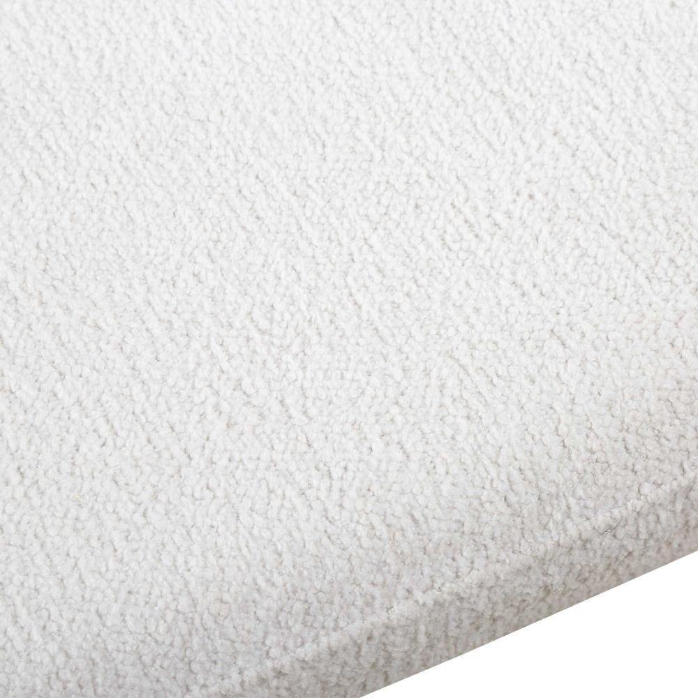 A Gently Padded And Sloped Seat Features A Plush Attached Cushion Atop The Hand Forged Chiseled Iron Base Finished In Aged Gold. Upholstered In A Textured White Boucle With A Toxin-free, Eco Friendly Treatment To Help Resist Water Based Stains.