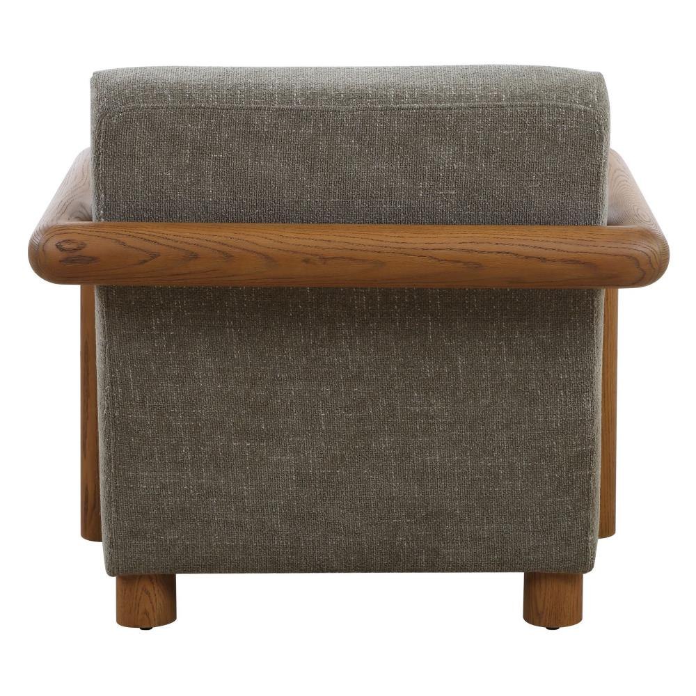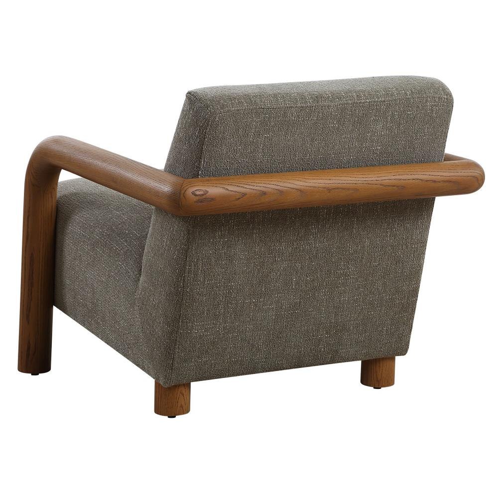 Sturdy Curved Oak Arms Are The Focal Point Of The Balance Accent Chair. Finished In A Natural Warm Stain Paired With A Comfortable Floating Seat Upholstered In A Knubby Herb Green Chenille.