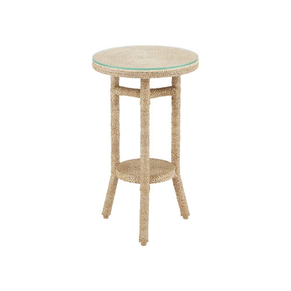 The wrought iron and wood frame of the Limay Rope Drinks Table is wrapped in natural abaca rope. The precision with which artisans cover the vertical and horizontal lines and the disk elements on the rope drinks table is accomplished with a painstaking focus that is a hallmark of refined handicrafts. The Limay is topped with a clear piece of glass to keep the top free from stains.