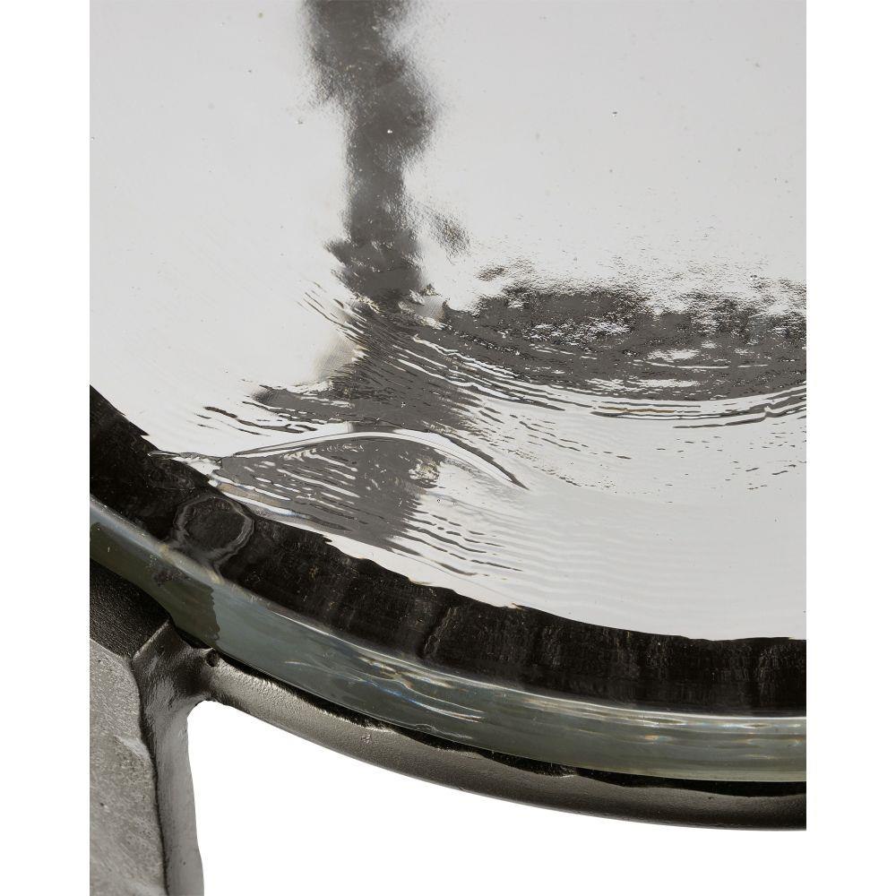 The point at which art and fine craftsmanship meet is where the Acea Gold Drinks Table resides. Made of cast aluminum poured into a hammered mold to create even greater texture, the gold drinks table is topped with a cast glass disc that is equally textural and luminous. This table will be a piece of jewelry in a space.