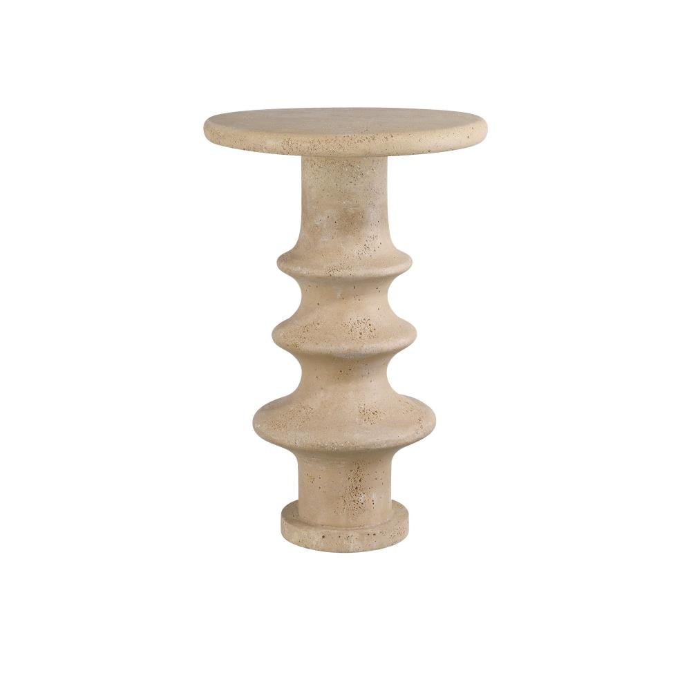 Blending timeless elegance with modern craftsmanship, the Rollins Accent Table is made of faux travertine, a carefully crafted blend of stone powder and composite that is expertly finished to mimic the warm, natural beauty of travertine. The table features a gracefully fluted pedestal that supports a smooth, round top. With its refined texture and versatile tan hue, the Rollins is an ideal choice for both classic and contemporary interiors.