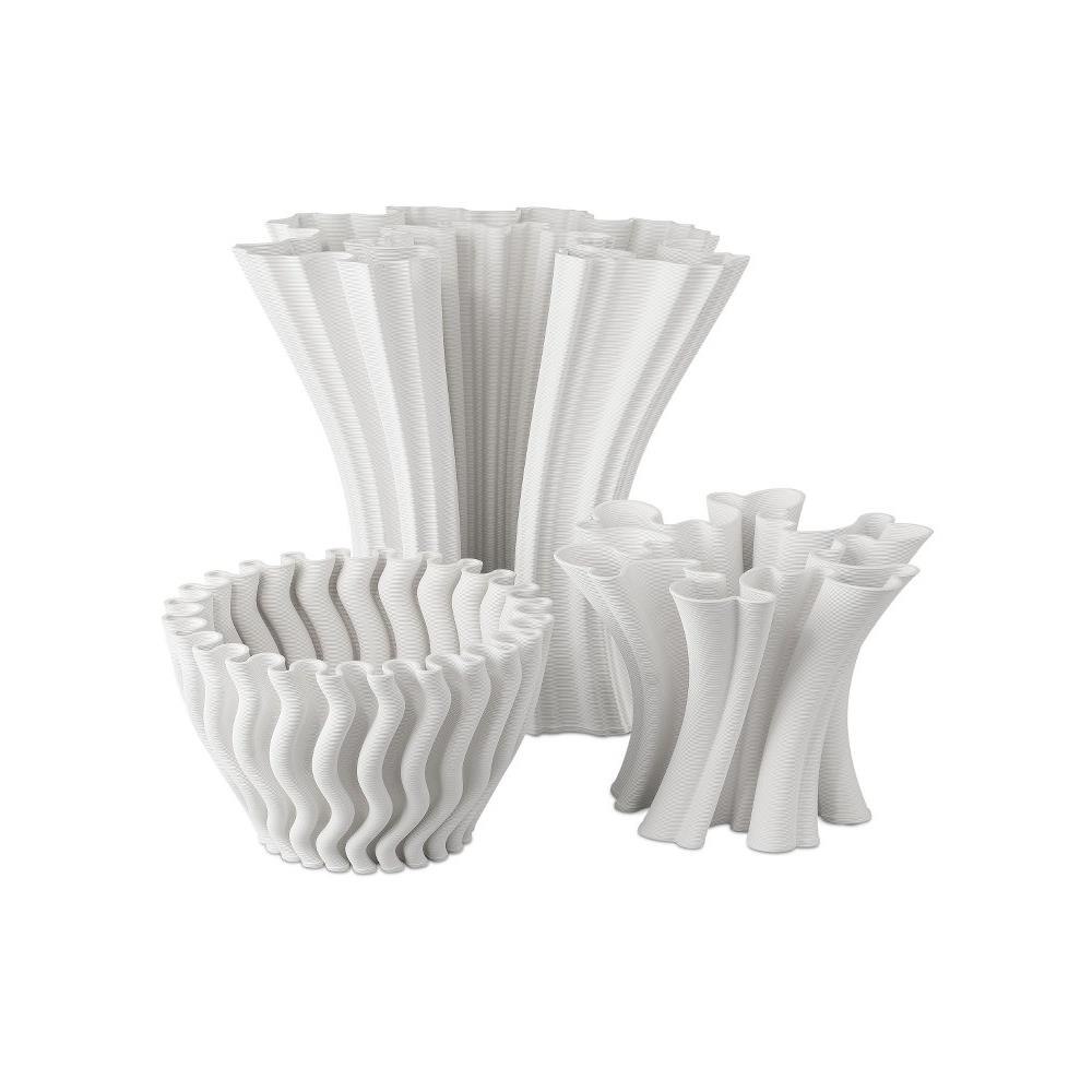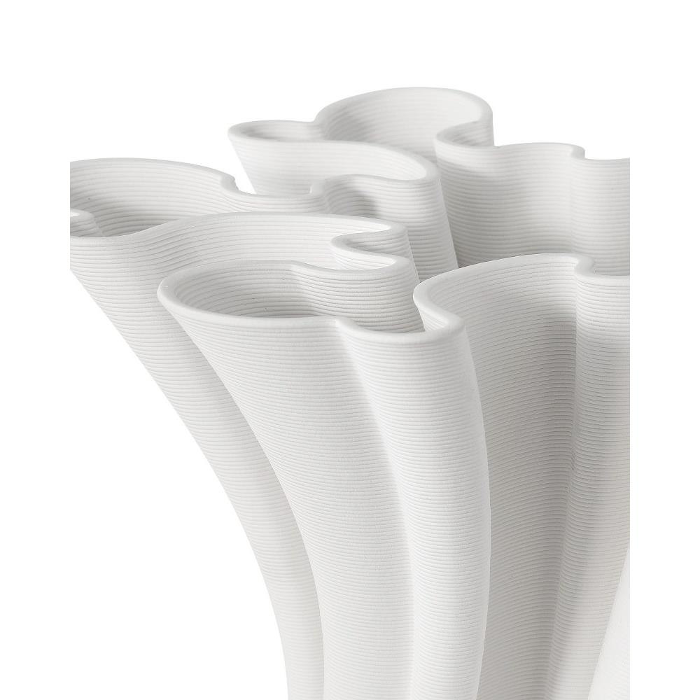 The Godet Twist White Vase is a technological feat. The deep furrows that wrinkle around the form to create waves of movement are achieved with such a uniformity they can only be machine-made. The most surprising thing about this handsome vessel is that it is made of 3D-printed porcelain, an ancient material you might not expect to be so amenable to such a modern process.