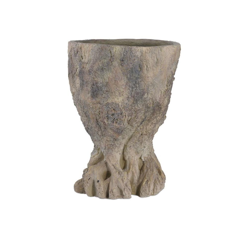 In the tradition of faux bois, the Old Growth Medium Planter is incredibly lifelike. Crafted from fiber cement in a dappled finish, the stump-shaped brown planter looks aged like an antique would had it been ornamenting a garden for decades. The way the gnarled roots culminate at the bottom is particularly convincing. This plant pot has a drain hole.