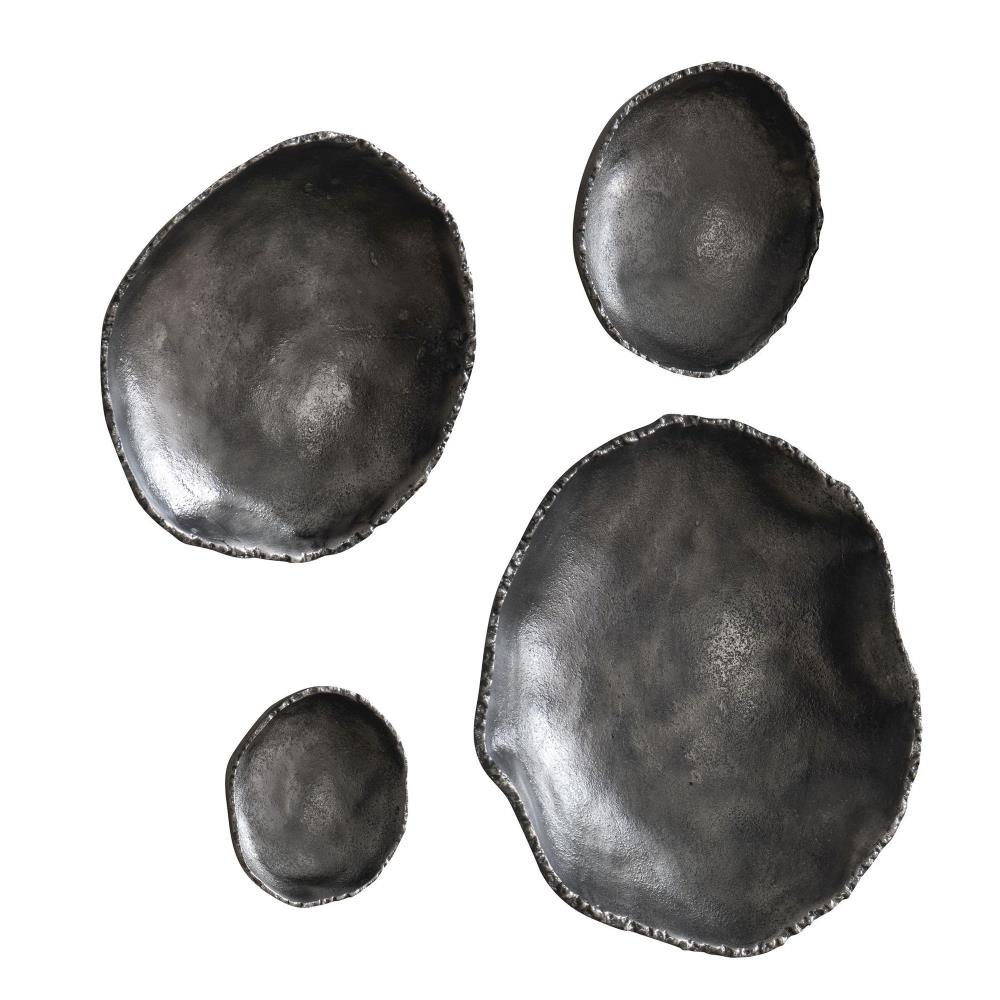 Handcrafted From Aluminum, These Metal Wall Bowls Feature Noticeable Textural Elements With Organic Edge Details And Are Finished In Antiqued Nickel. May Be Hung On A Wall With Keyhole Hangers, Or Displayed As Tabletop Accessories. Sizes: Sm-5x5x1, Med-7x7x2, Lg-9x9x2, XL-11x11x3