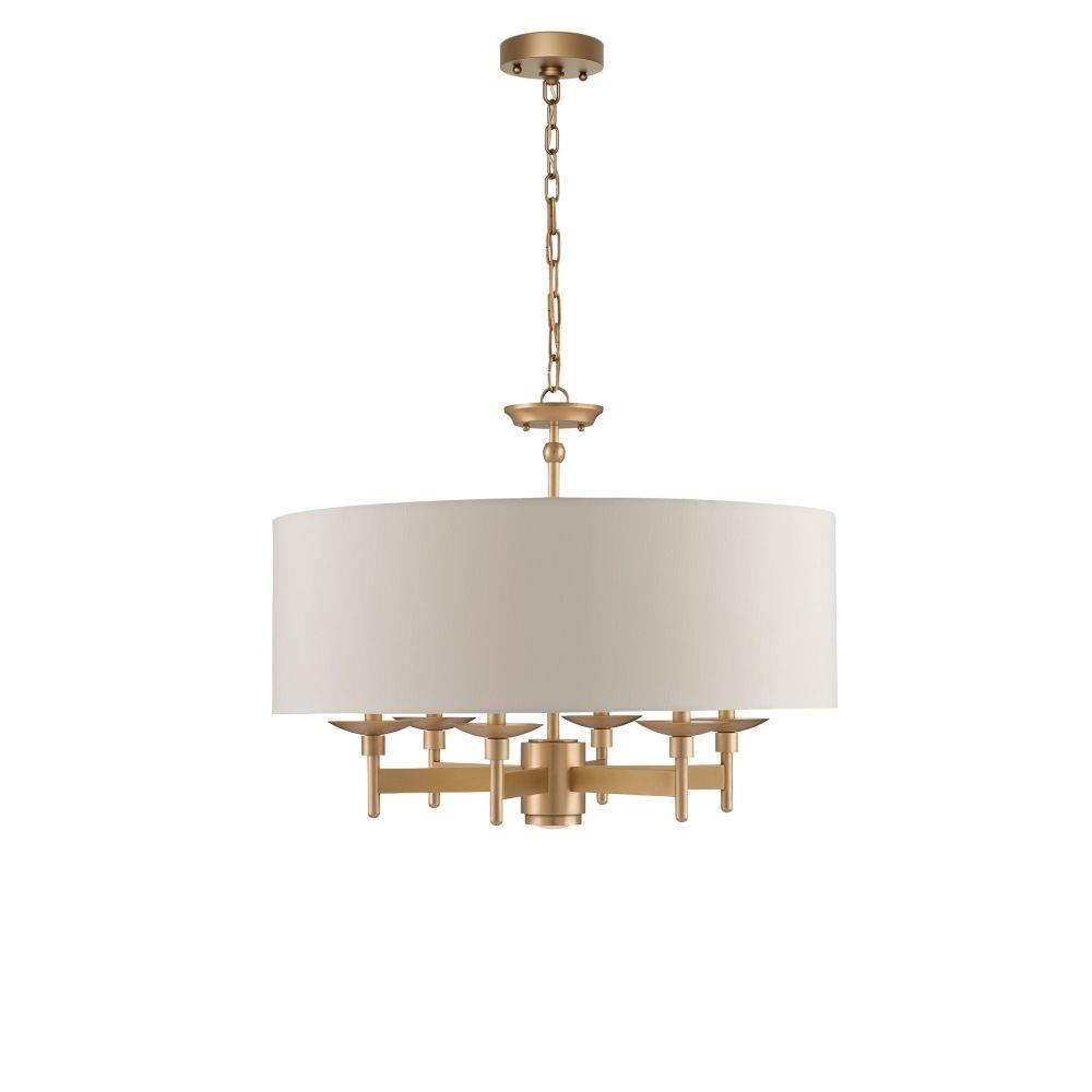Light glows softly from behind a generously proportioned shade that encircles the Bering Nickel Chandelier. It is suspended around a metal frame in a polished nickel finish. The lines of the silver chandelier are minimal but expressive with its thin stems lifting the bobeches. The Bering is also available in a brass finish.