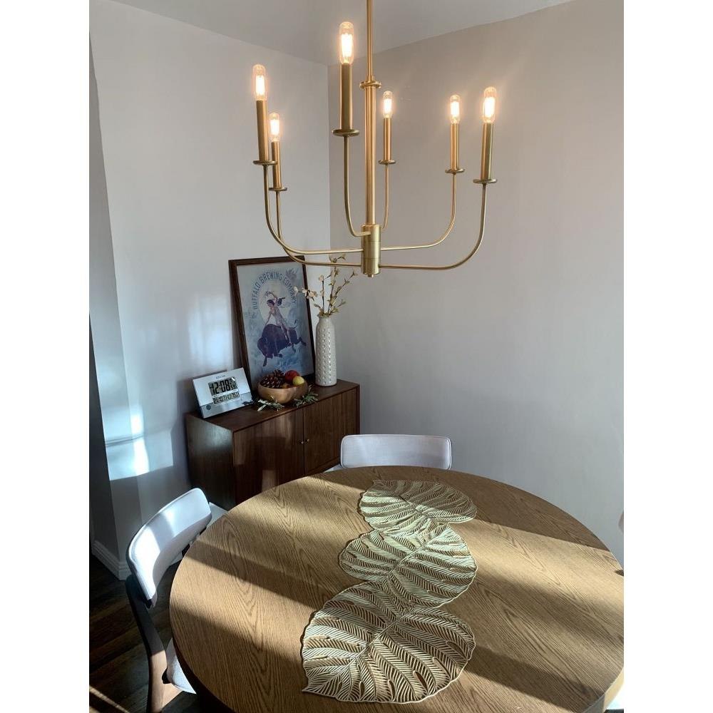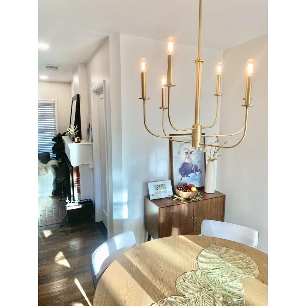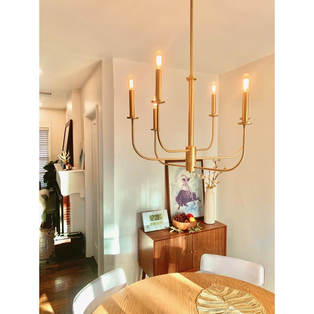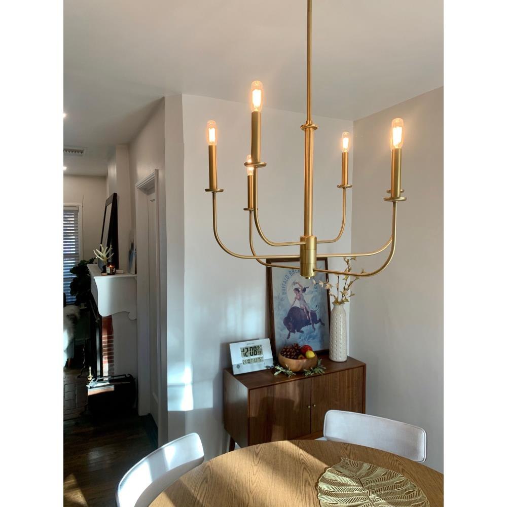 Arms sweep upward from an adjustable collector to create a minimal yet stately design. Available in Black, Satin Brass, and Satin Nickel, this collection provides a transitional look for a variety of settings.