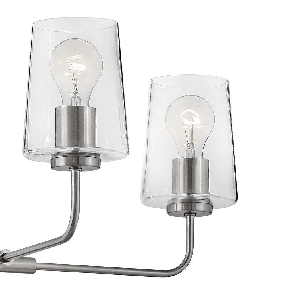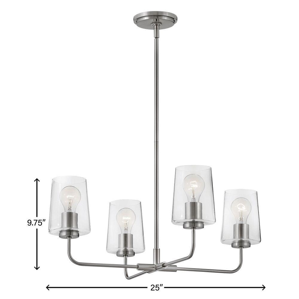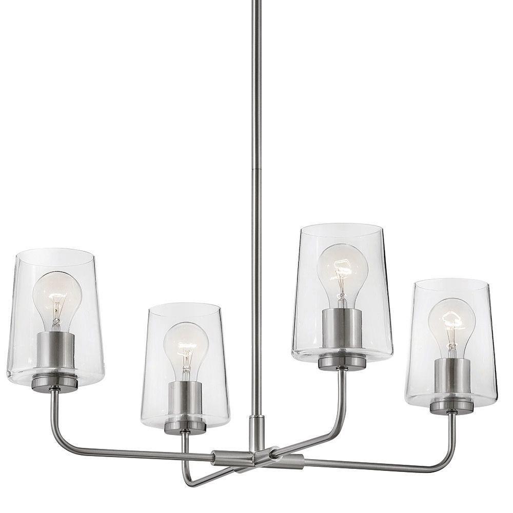 Kline’s minimalist form doesn’t need to make a fuss, thanks to its pared down but supremely stylish transitional silhouette. Keeping things architectural, Kline’s 4-light chandelier features slender curved arms in a rich Black finish fitted with sleek clear glass shades for a perfectly precise profile.