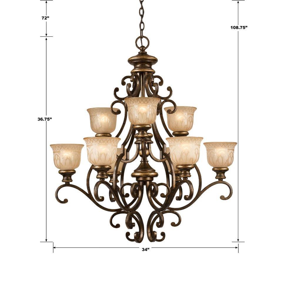 Bronze curves accent warm glowing amber colored glass globes. The Norwalk radiates with romantic elegance, for a traditional yet hospitable accent. This chandelier makes a great first impression in a front stairwell, entry, or formal dining room.