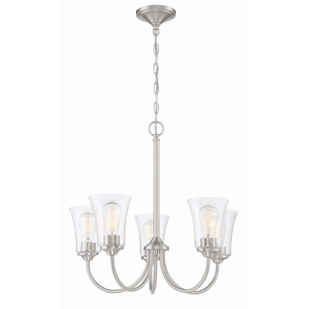 From the delicate contours and smooth flowing lines, to the graceful beauty of the white frosted glass shades, the Gwyneth collection redefines value and style.White Frost Glass Shades (included)Requires 5 Medium base, 100 watt bulbs (not included)Comes with 6' of ChainSturdy Steel ConstructionSuitable for Dry Locations1 Year Warranty.