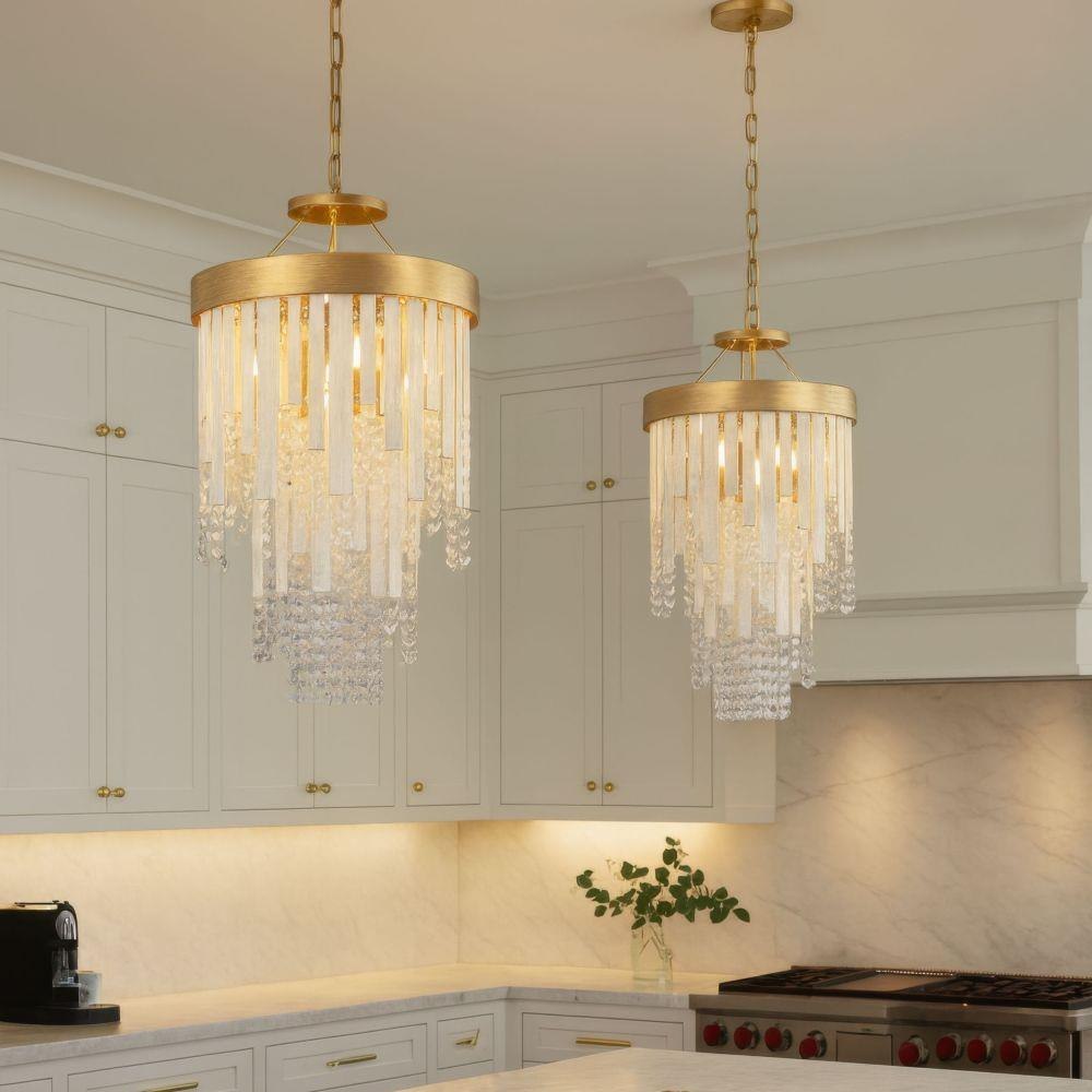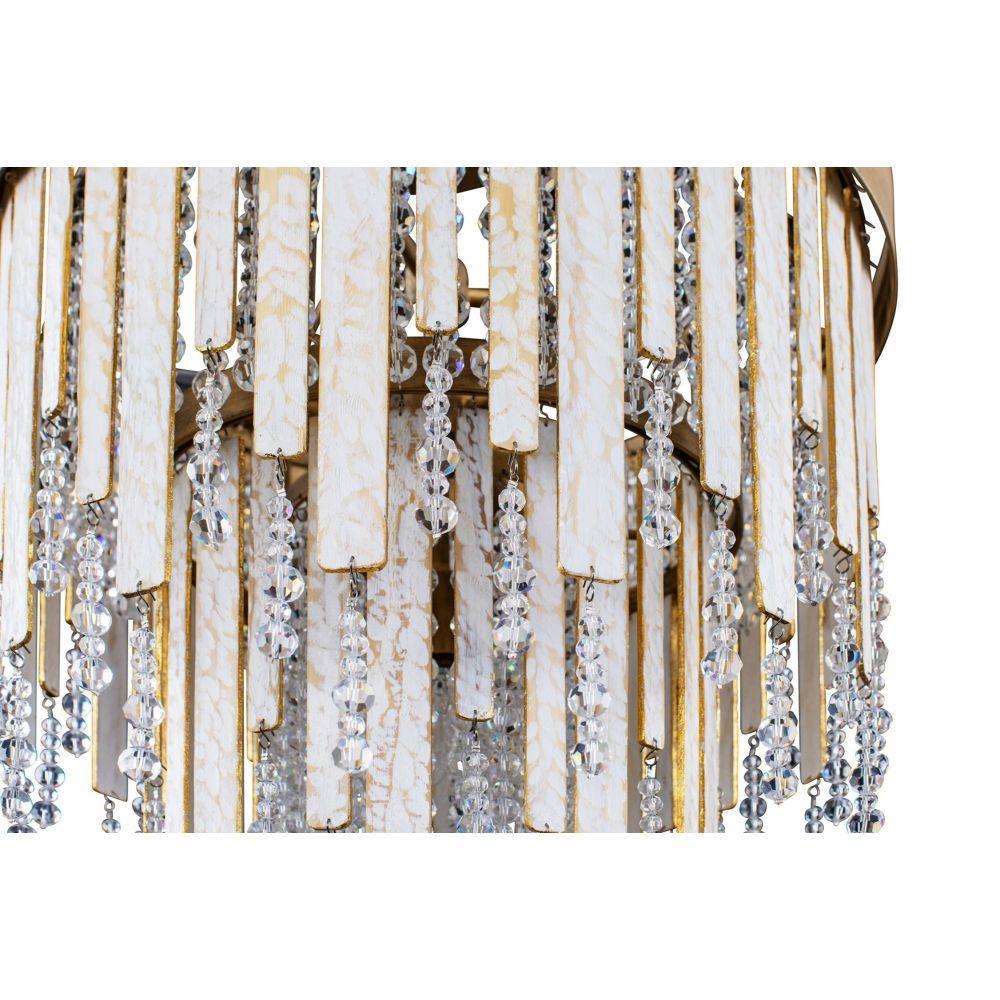 Ignite the swank and sultry soul of New Orleans. From feelings of a warm breeze blowing over a porch with gauzy drapes, to the decadence and passion of a smoky jazz club, Lafayette is sure to set the mood in any room. Echoing the look of live oaks with Spanish moss on dewy mornings, crystal beads sparkle around the hand-carved, white-and-gold washed reclaimed wood strips.