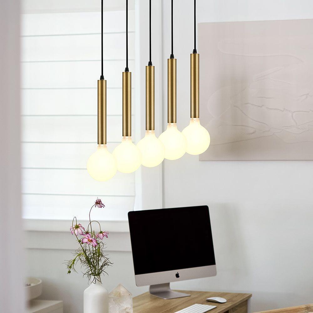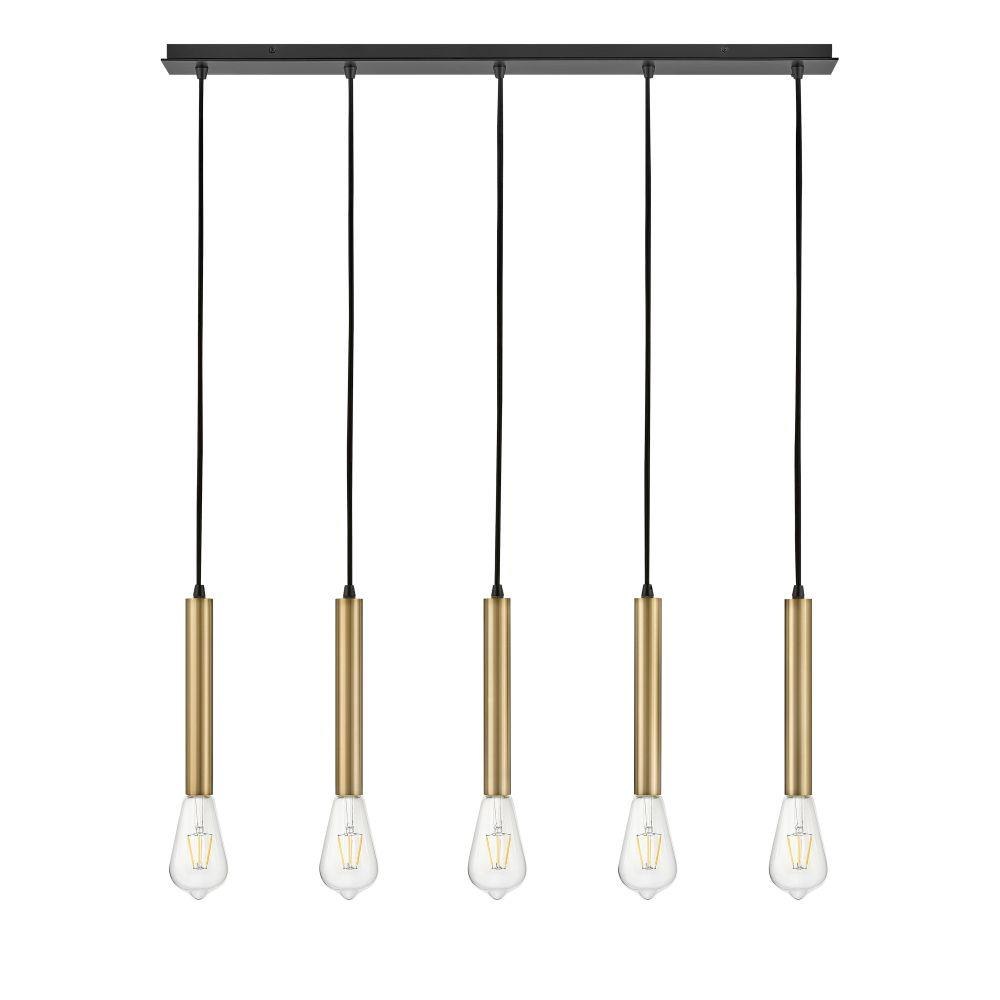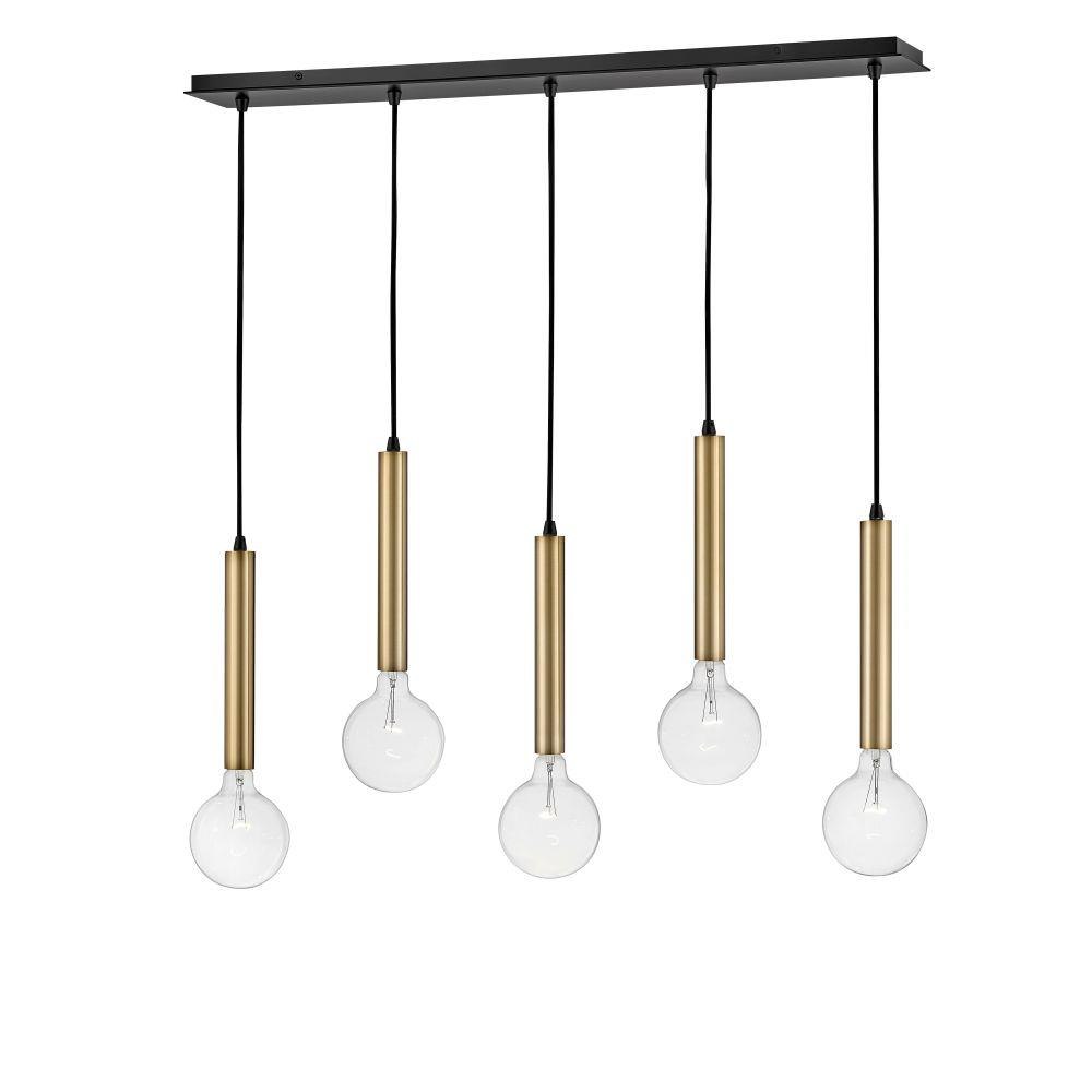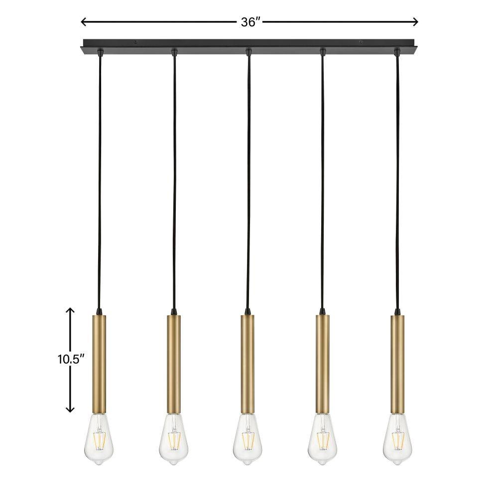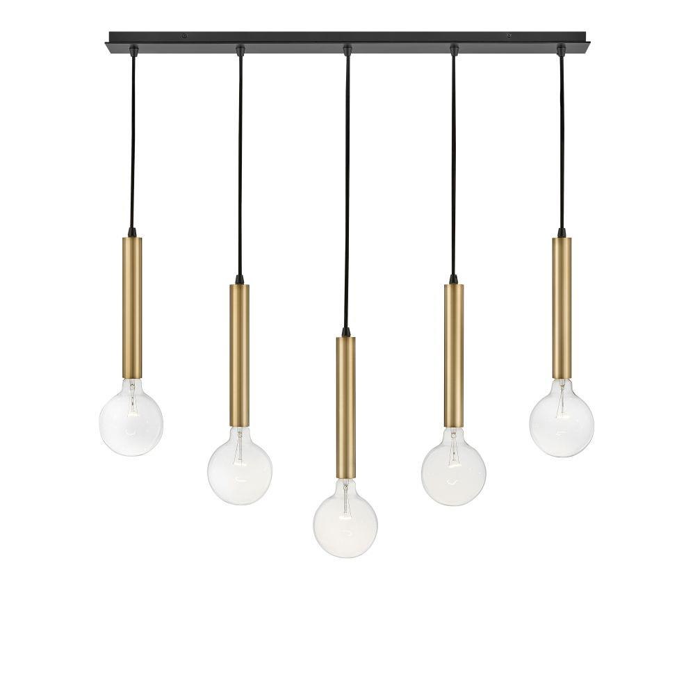 Mingling mid-century modern design elements into its posh form, Bobbie merges a playful vibe with stellar style. This eye-catching 5-light linear chandelier pairs two bold finishes, gleaming Lacquered Brass and an intense Black, to set up the true star of the show: look-at-me bulbs that makes lighting what it should be…fun. To complement Bobbie’s confident style, we recommend five G40 oversized globe-styled bulbs in a standard medium base. This cord-hung design is fully adjustable for an ideal one-size-fits-all approach to satisfy your style.