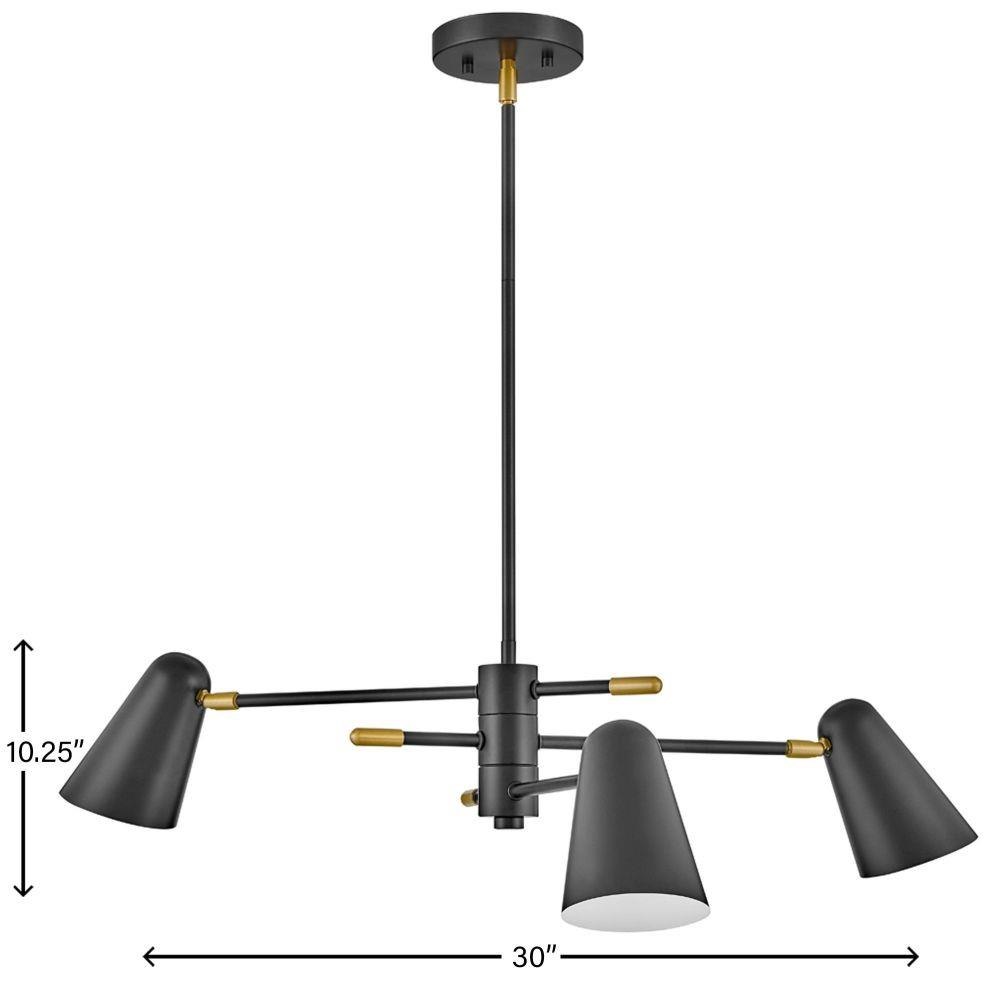 Let creativity soar with Birdie’s versatile form. The 3-light convertible single-tier chandelier has arms that articulate and shades that pivot to deliver the perfect directional light – AKA flexibility at your fingertips. A Black and Lacquered Brass duo is the perfect finishing touch to this mobile, mid-century modern design.Suitable for use in dry (indoor) locations as defined by NEC and CEC. Meets United States UL Underwriters Laboratories & CSA Canadian Standards Association Product Safety Standards | This fixture includes multiple down stems in various lengths to customize the installation height of the fixture, including one 6" stem and two 12" stems. | Please refer to Lark's Warranty for complete product warranty details, some warranty limitations may apply. | Effortlessly cool, this mid-century modern design inspires any space with its chic vintage vibe | This stem hung fixture may be hung on a sloped ceiling | The articulating arm can swing left or right and the shade can be adjusted up or down. | Features On/Off switch | Striking black finish enhances design | Convertible fixture mounts directly to canopy or with a fixture-specific stem or chain that is 6” or less