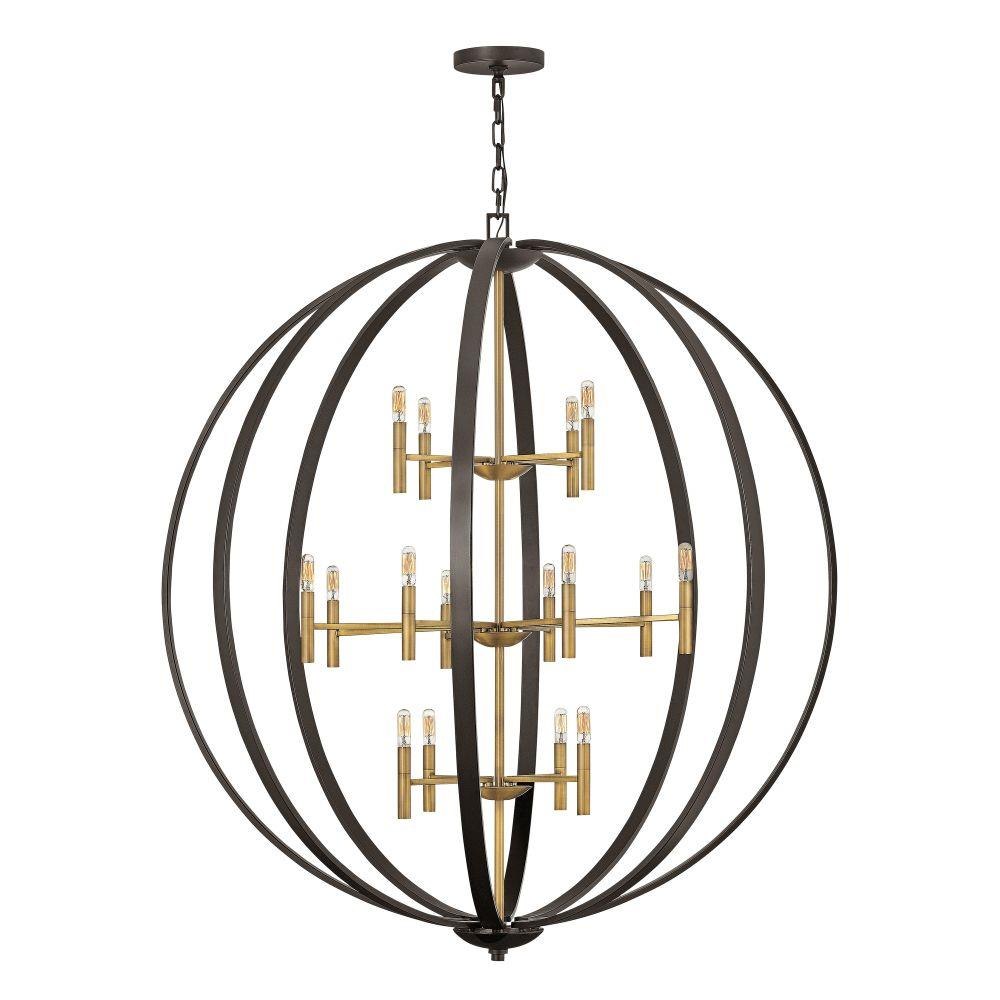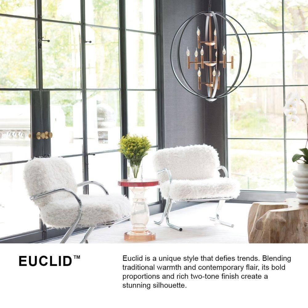 Euclid is a unique style that defies trends. Blending traditional warmth and contemporary flair, its bold proportions and rich two-tone finish create a stunning silhouette.Suitable for use in dry (indoor) locations as defined by NEC and CEC. Meets United States UL Underwriters Laboratories & CSA Canadian Standards Association Product Safety Standards / Bold silhouette with dramatic details creates a modern statement / This chain or cable hung fixture may be installed on any sloped ceiling / Fixture weighs over 50lbs. Must be supported independently of the outlet box unless the outlet box is UL listed for the appropriate weight. / Bold and robust dark bronze finish / Ideal for vintage filament bulbs (not included)