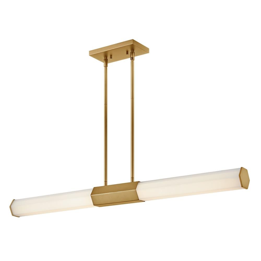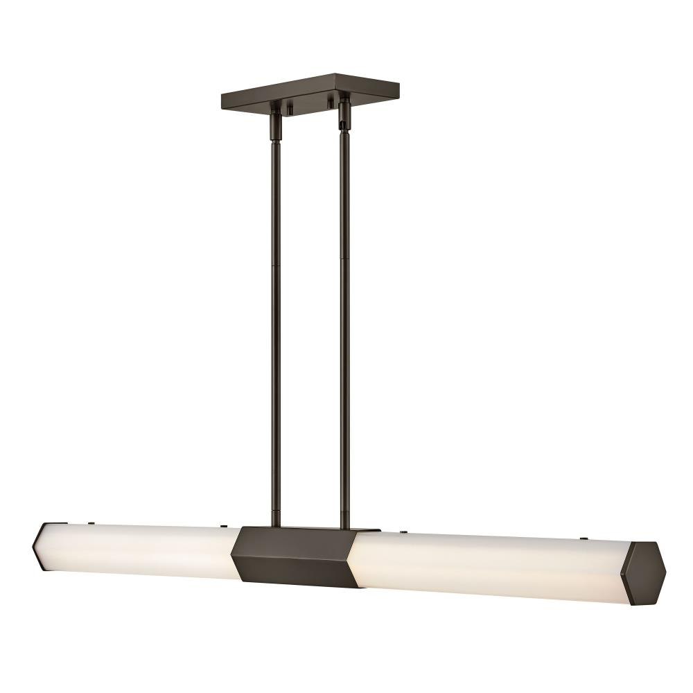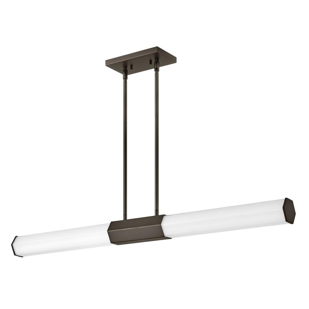 For a profile that is unpretentious, yet unforgettable, view all the sides of Facet. Interesting angles combine with a bold center bracelet to create the edgy and contemporary look. Hexagonal etched glass is highlighted by a Black Oxide or Heritage Brass center and end caps of the same shape, while the hidden mounting hardware remains unseen to simply highlight the superior style.Suitable for use in dry (indoor) locations as defined by NEC and CEC. Meets United States UL Underwriters Laboratories & CSA Canadian Standards Association Product Safety Standards / This fixture includes multiple down stems in various lengths to customize the installation height, including two 6" stems and four 12" stems. / Merging the best of traditional and modern elements, with a sophisticated and streamlined silhouette perfect for any space / This stem hung fixture may be hung on a sloped ceiling / LED components carry a 5-year limited warranty / Meets California Energy Commission 2013 & 2016 Title regulations/JA8 / Striking black finish enhances design