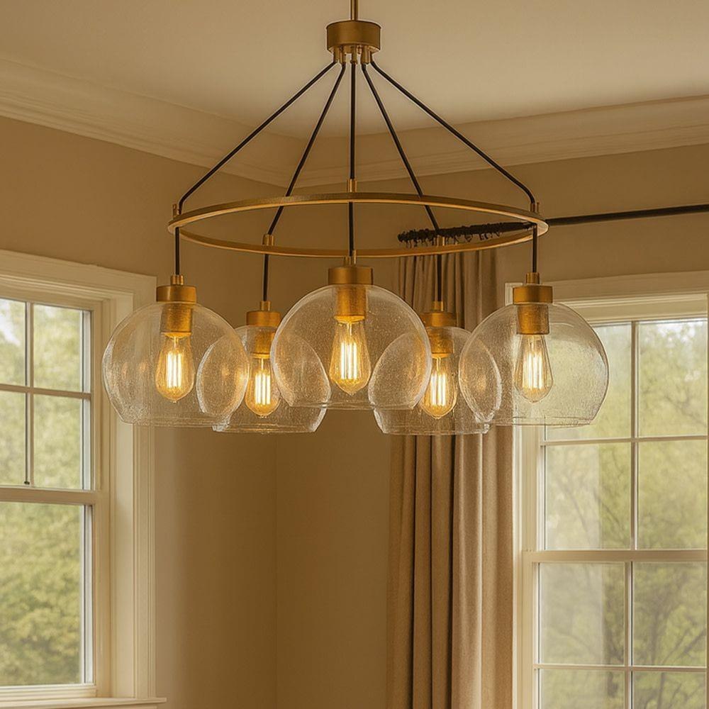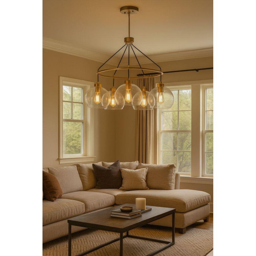 Your room will get rave reviews thanks to Rumi. This modern, art-forward fixture captivates with the chic fusion of clear seedy glass globes and a flawless Lacquered Brass finish. Design opportunities abound, with Rumi adding thrill to airy and cozy spaces alike.