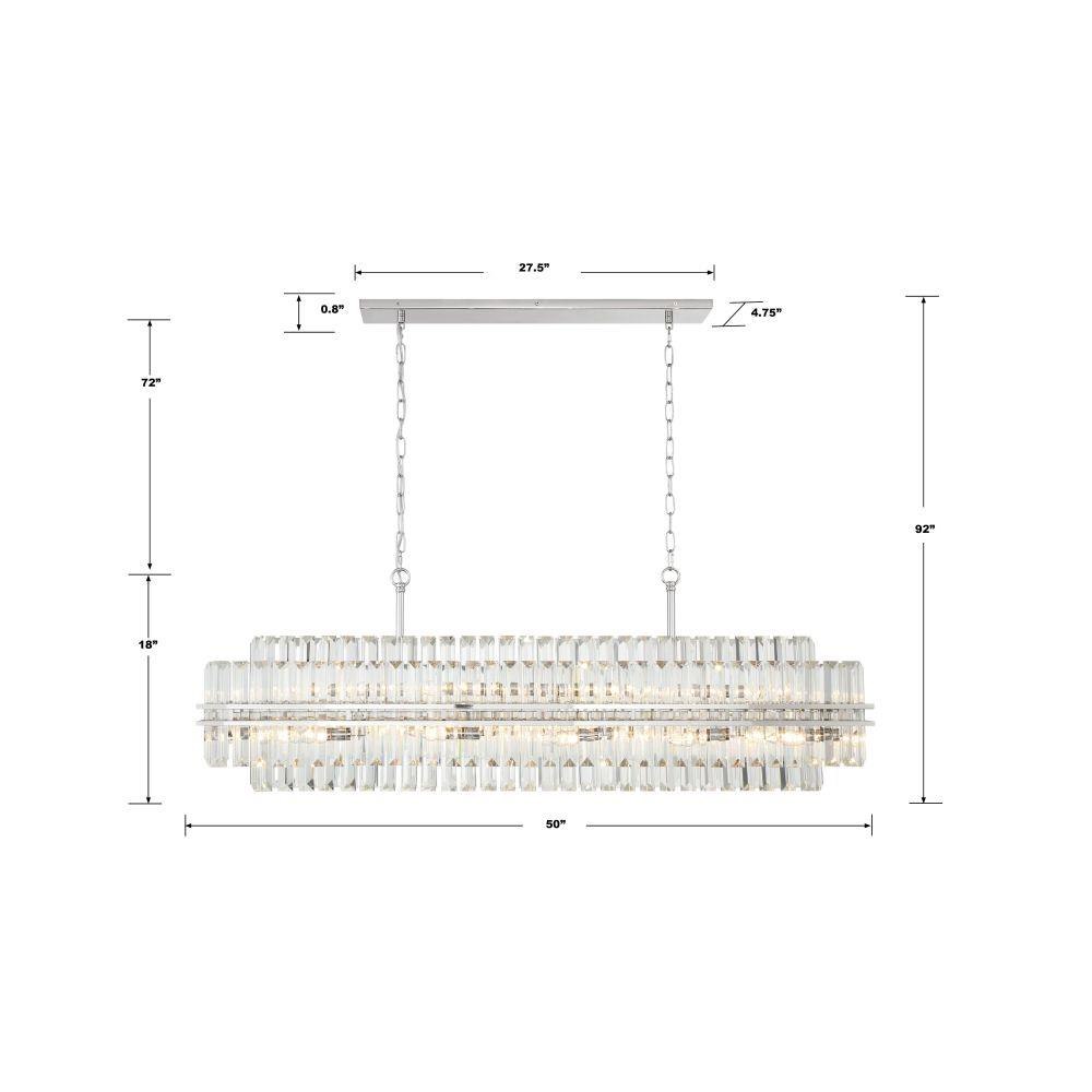 Create a lasting impression with the Hayes collection. This stunning masterpiece features tiered multi-faceted crystals elegantly held by a sleek steel frame. The sophisticated design transforms any space into a captivating focal point. Elevate your surroundings with the Hayes collection's striking beauty and mesmerizing presence.