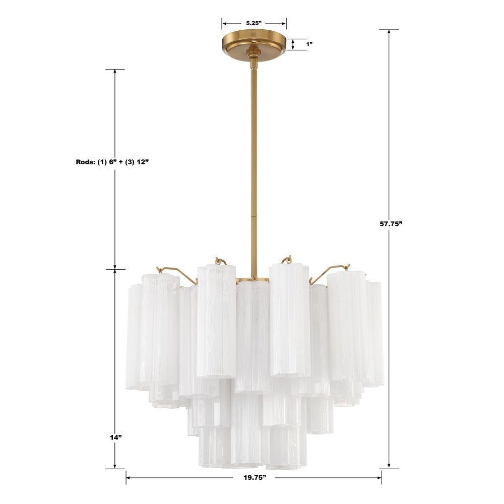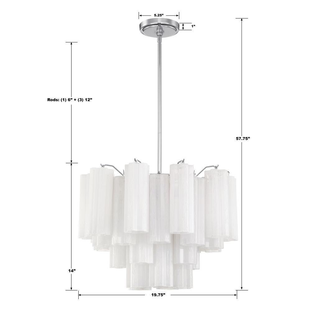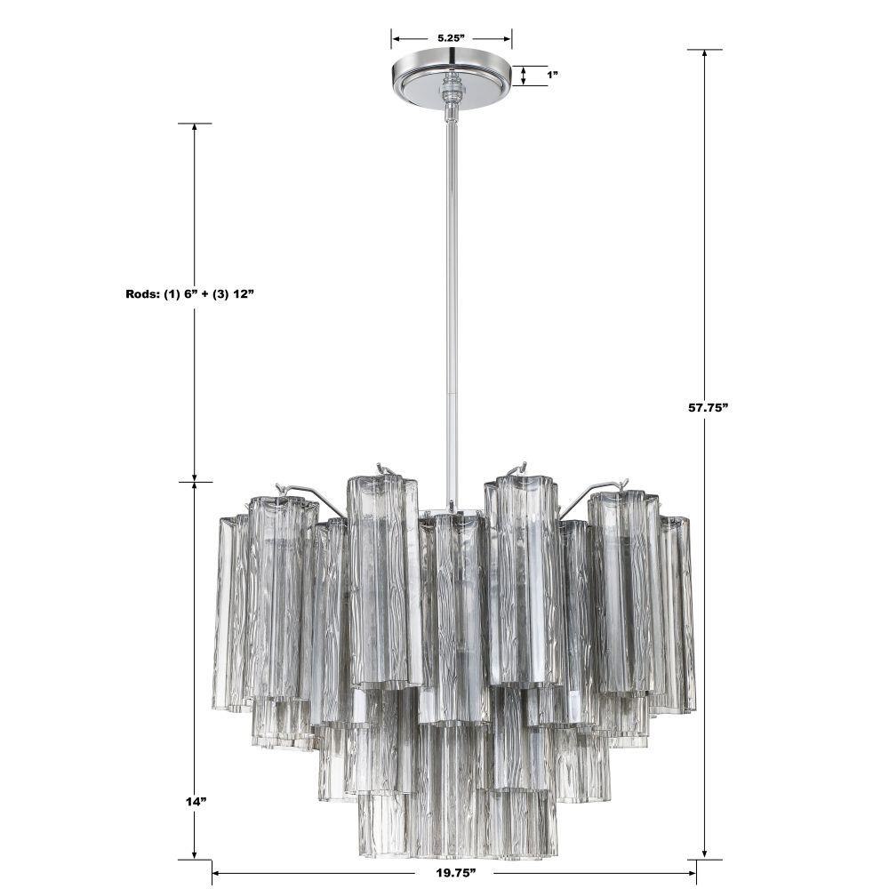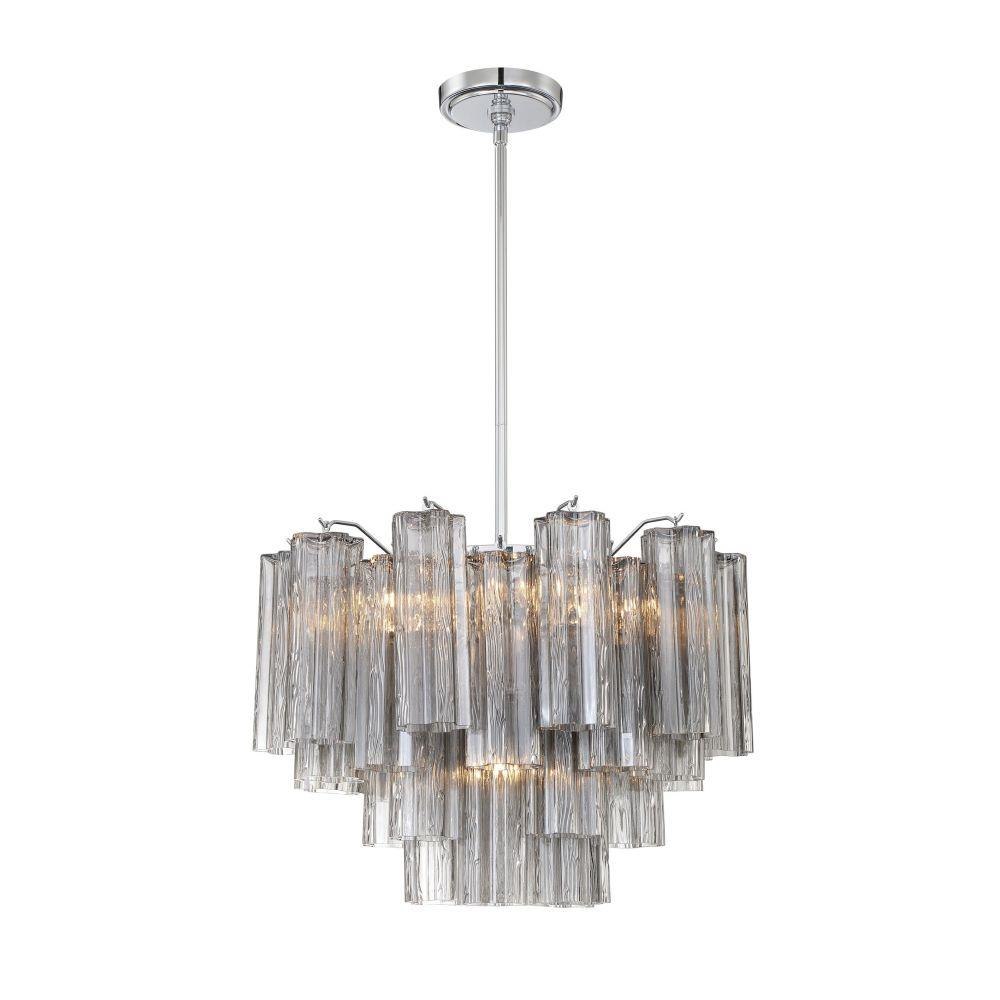 The captivating Addis Lighting Collection is a modern-day interpretation of the iconic mid-century Tronchi chandelier. Inspired by its predecessor's sleek lines and geometric shapes, the Addis features a polished Chrome or Aged Brass metal frame that exudes sophistication and style. Its unique design showcases transparent tiers of textured Tronchi glass tubes, forming a mesmerizing 5-point rounded star shape. Choose from a range of glass colors, including clear, amber, smoke, and white, or the stunning Autumn option, which features a captivating multicolor disposition of amber, clear, and smoke Tronchi glass. The Addis Lighting Collection offers various sizes and finishes, allowing you to find the perfect fit for your space while adding a touch of timeless elegance.