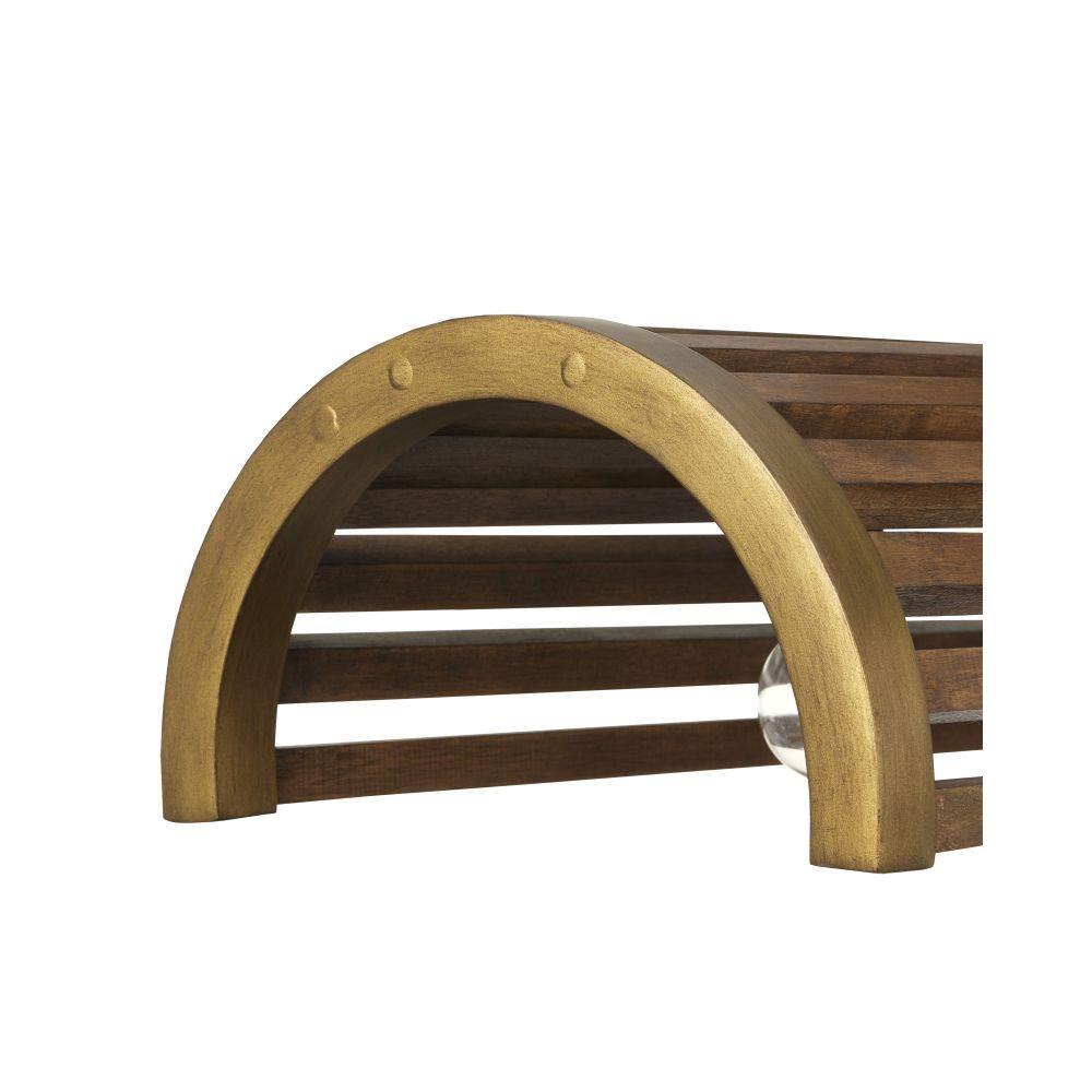 Tom Caldwell's inspiration for the design of the Woodbine Rectangular Chandelier was to take a natural style story and make it modern. He envisioned the utilitarian linear brown chandelier with a decided modern farmhouse feel as perfect for hanging over a bar or a long kitchen island. The wood slats of the handsome chandelier gain their u-shape from the horseshoe-like metal bands that fasten them together. The warm chestnut finish on the wood and brass finish on the metal bring this long, narrow chandelier an industrial vibe.