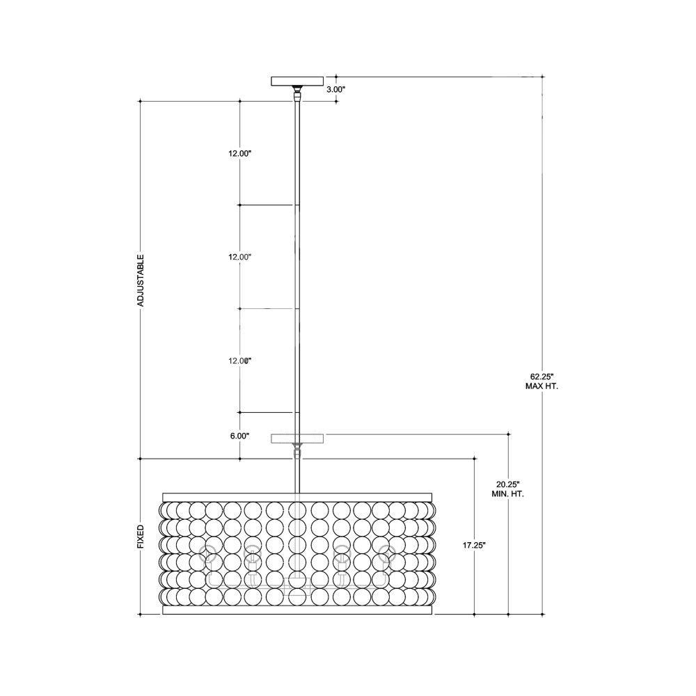 The wooden beads on this fixture were the inspiration for Ian Thornton as he designed around them to create the Holcroft Chandelier. The Sandstone-finished beads are fastened to a wrought iron frame dangling from a rod, both in a Sugar White finish to make this design surprisingly light. The large size of the beads is one of the surprising elements to this design that skews bohemian in style.