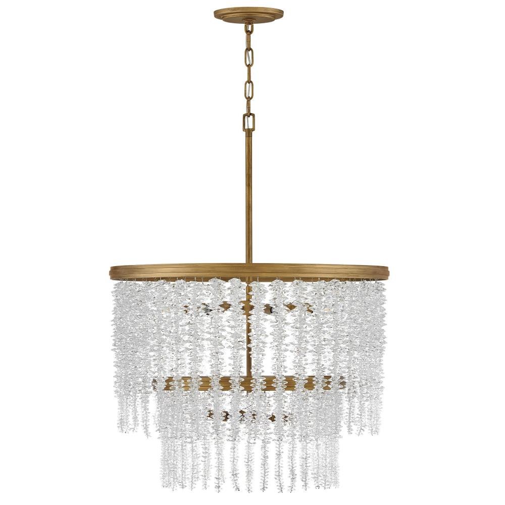 Dripping with glamour, Rubina’s magnificent shade is crafted from individually hung strands of sparkling crystal. A traditional tiered frame accentuates every beautiful refraction with its Burnished Gold finish.
