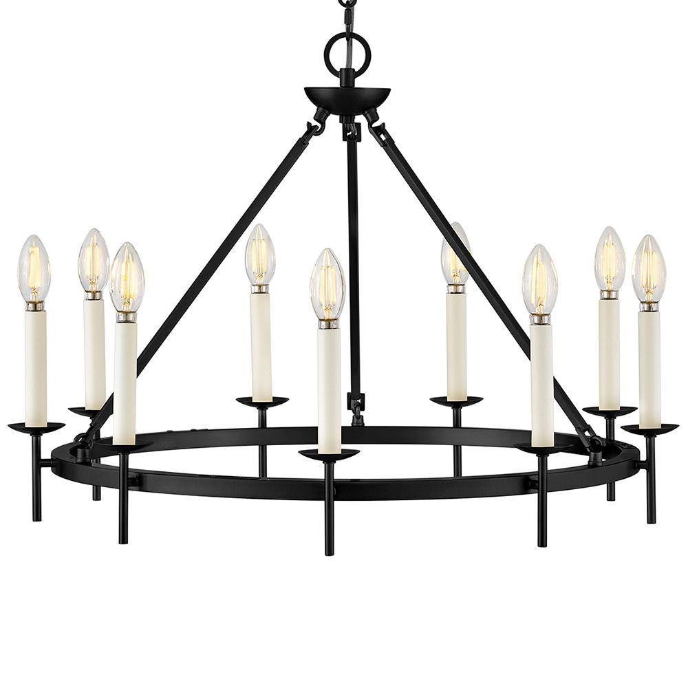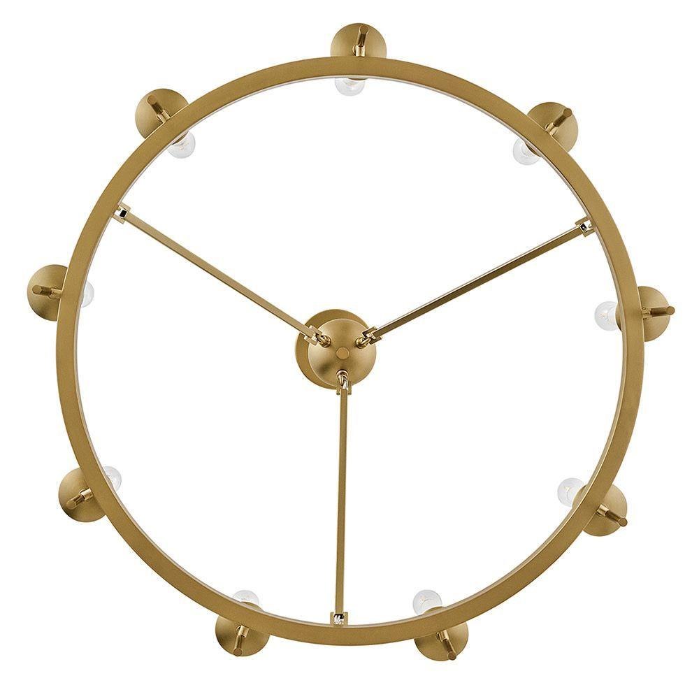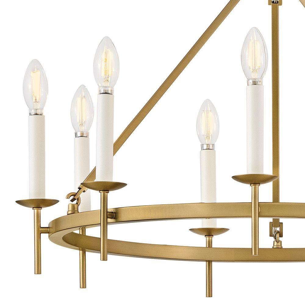 Traditional in the best way, Copley’s simple ring silhouette is topped with contrasting candle sleeves as an homage to classic chandelier styles. Exposed candelabra lamps glow with warm and inviting illumination, creating soft ambiance within grand gathering spaces.