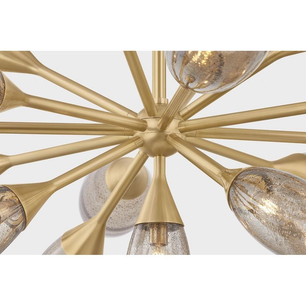 Organic forms and surprising geometry come together in the bold Sputnik-inspired design of Cordoba. This family of fixtures features an array of seedy light bronze glass shades that are light yet voluminous; organic yet refined. The Vintage Brass finish on the frame gives Cordoba a retro flair, while the futuristic shape of the glass shades adds a contemporary edge. Available as a sconce, semi-flush mount, and chandelier in two sizes, Cordoba is perfect for adding a dramatic, sculptural moment.