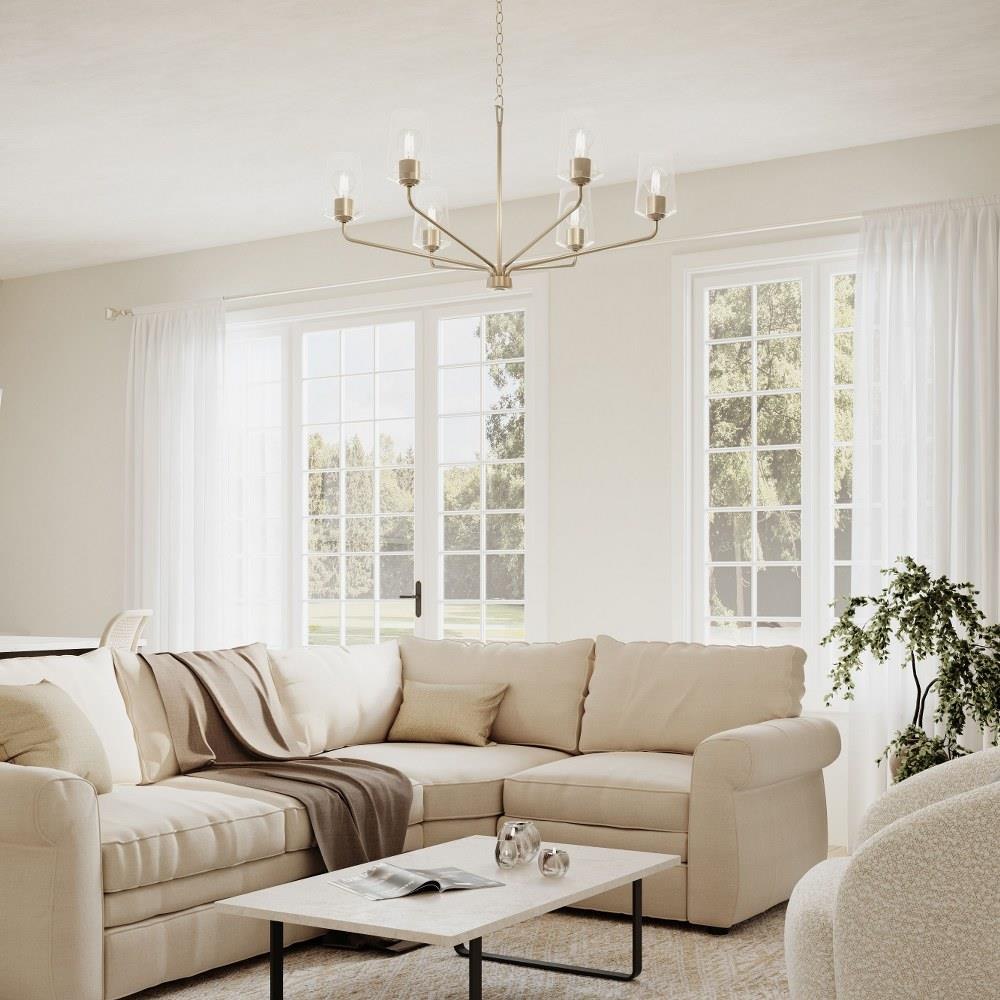 Illuminate your space with the refined elegance of the Celino 6-Light Large Chandelier. With shades inspired by the graceful silhouette of hand-crafted crystal wine glasses, each light fixture is a testament to meticulous artistry and timeless design. The perfectly proportioned clear glass shades offer a seamless and visually stunning form that delivers bright light to the surrounding space. Expansive, polished metal arms finished in crisp Black curve upwards, cradling the glass shades with a gentle embrace. Lighting from the Celino will infuse your home with a sophisticated and inviting ambiance.