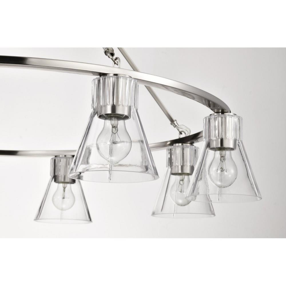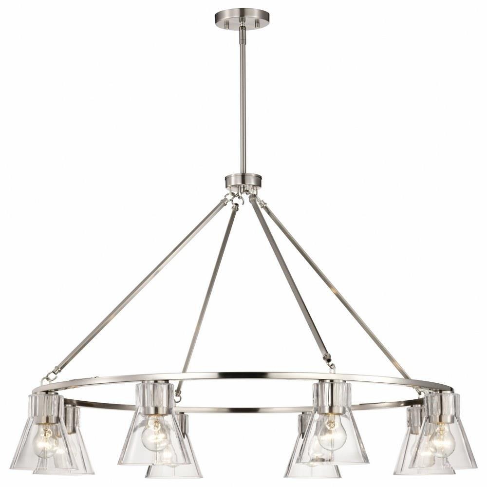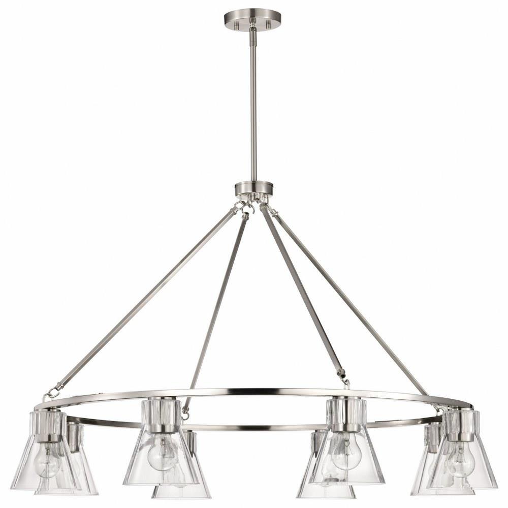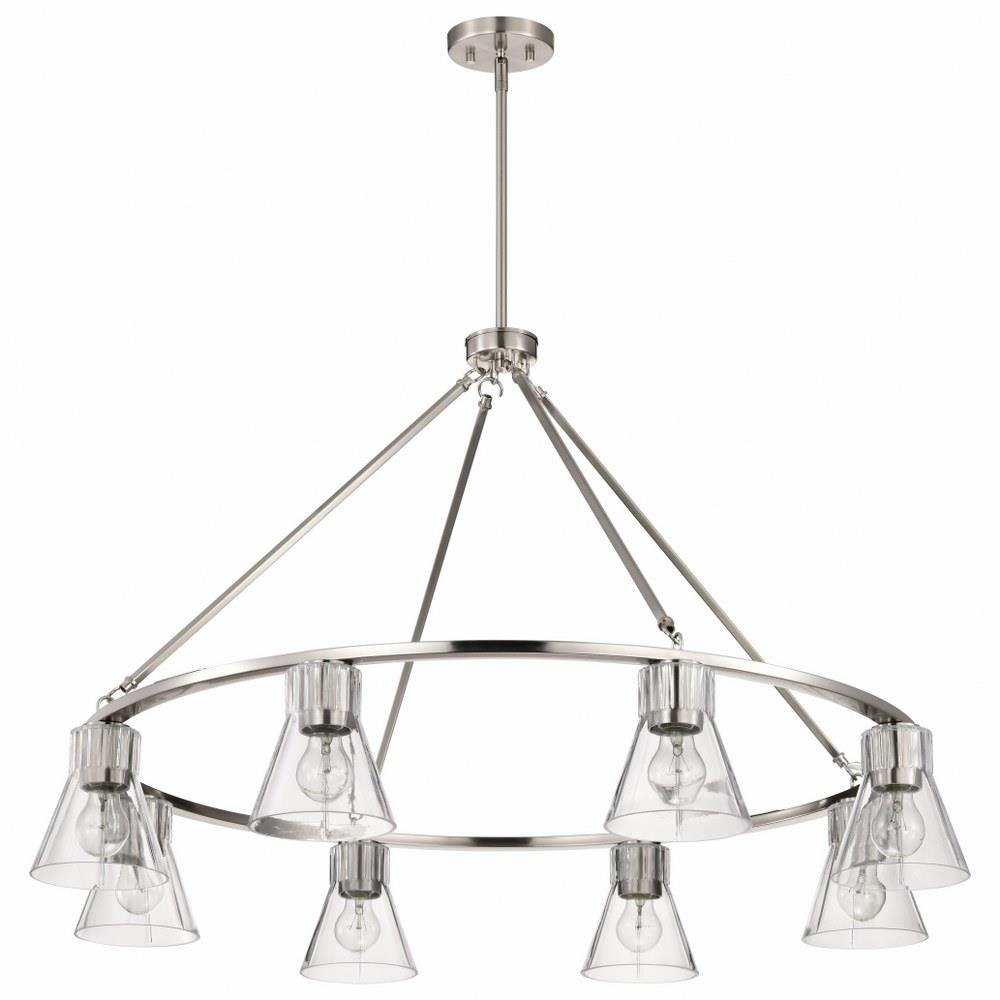 Step back in style and revel in the charm of retro sophistication with the Gianna 60-8336 eight light chandelier, a tribute to the bold aesthetics of the seventies. Effortlessly blending style with vintage allure, it redefines transitional design. Featuring clear glass shades adorned with intricate ribbed collars, Gianna is finished in brushed nickel, the perfect touch of metal and glass. Ideal for those who love a modern twist on retro design, Gianna brings an unforgettable blend of nostalgia and contemporary flair to any space.