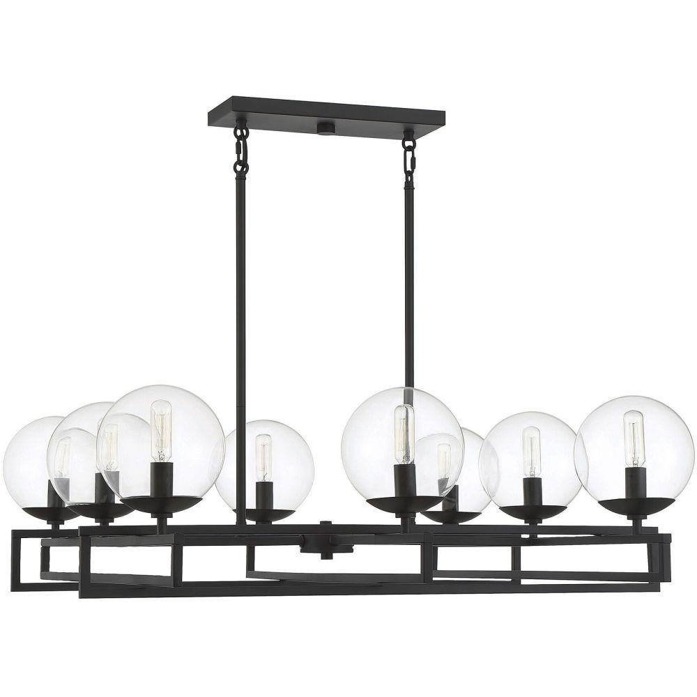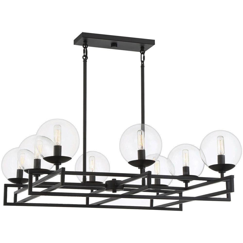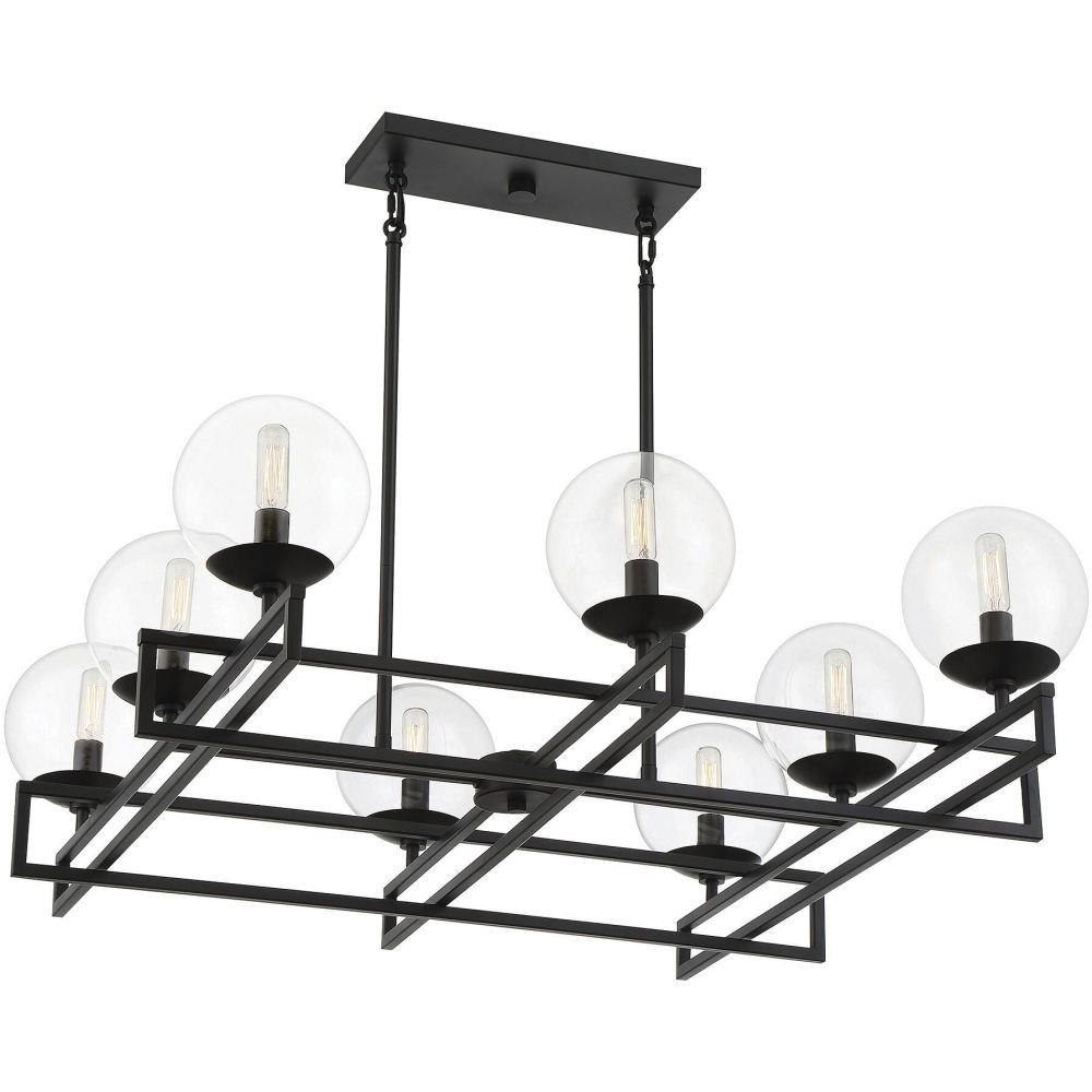 There’s a certain beauty to be found in the idea of an intersection, the place where everything comes together. The Savoy House Crosby 8-light chandelier showcases that beauty with lights nestled in clear glass orbs and placed strategically on intersecting rows. Finished in matte black. Crosby is 30" in length, 30" in width and has an adjustable height ranging from 15.75" to 61.75". It uses eight candelabra size bulbs of up to 60 watts per bulb. Comes with eight 12" downrods and two 6" downrods, plus 80" of cord.