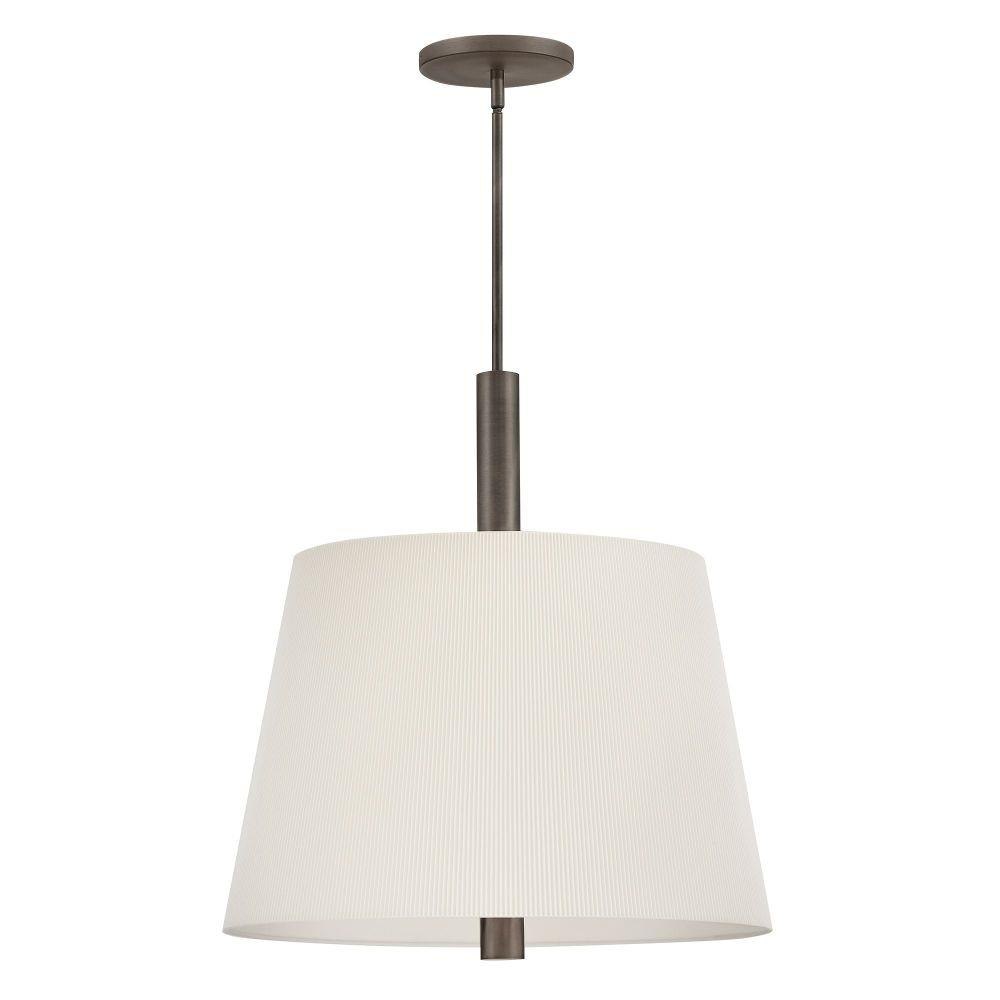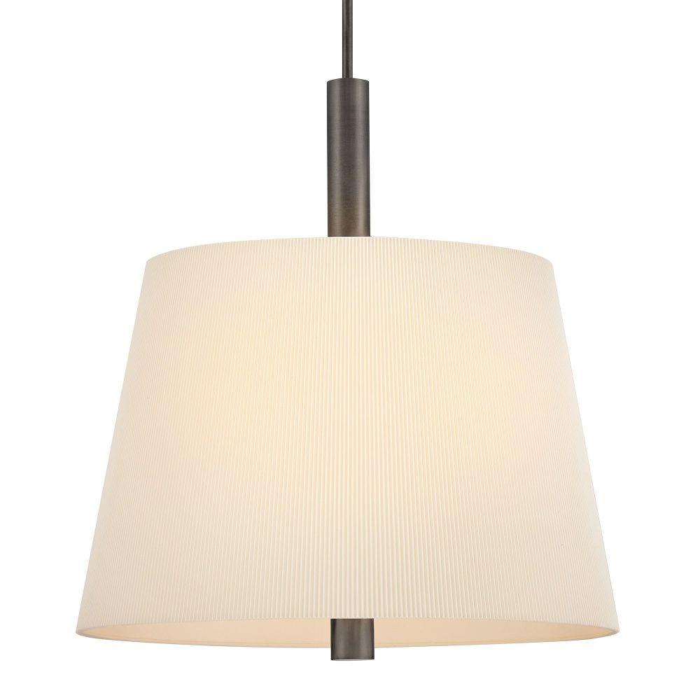 A structured design with a touch of Americana, Clive’s tailored shade features a micro-pleated texture that adds a refined feel to the slightly tapered silhouette. A slim stem grounds the off-white fabric with a contrasting Heritage Brass or Slate Bronze finish.
