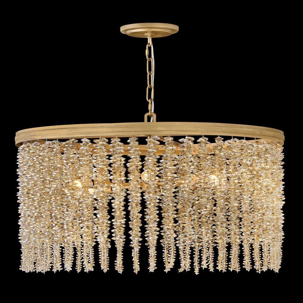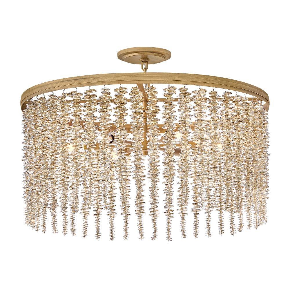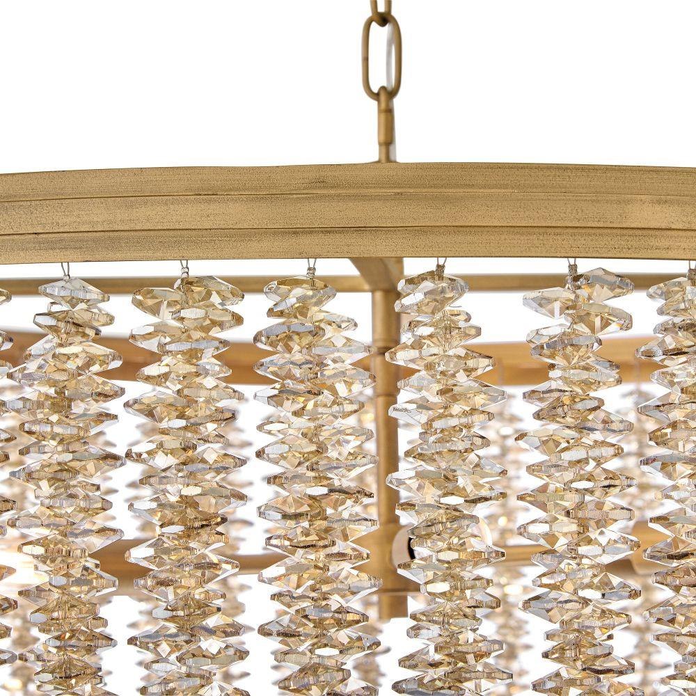 Dripping with glamour, Rubina’s magnificent shade is crafted from individually strung strands of sparkling crystal. A traditional tiered frame accentuates every beautiful refraction with its Burnished Gold finish.