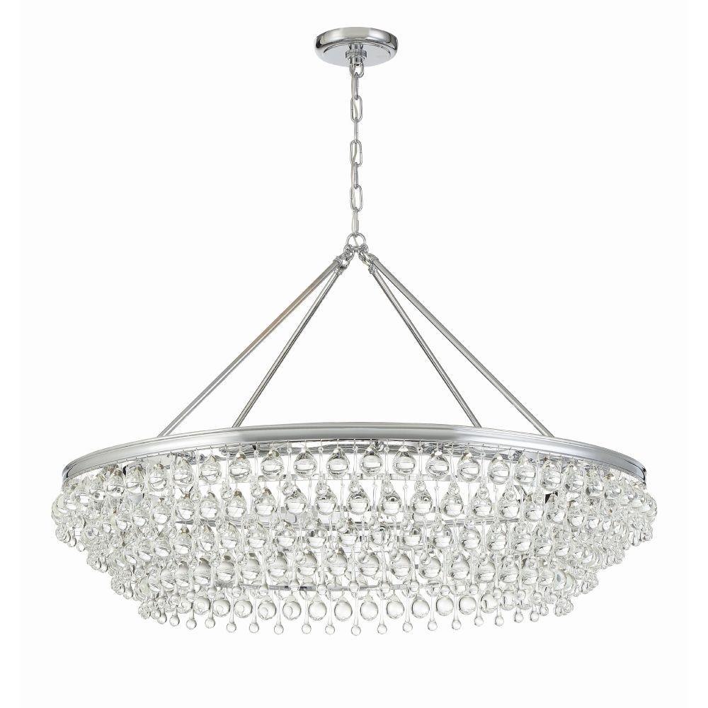 Elegance and glamour will illuminate the room with the Calypso collection. Draped in an abundance of smoothed shaped clear drops and balls, this contemporary collection is a perfect statement to a living room, dining room, bathroom, or entry.
