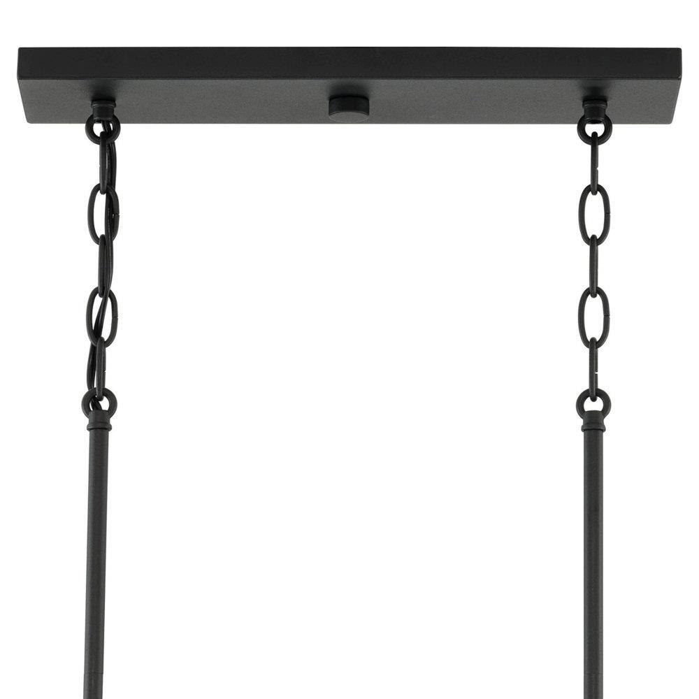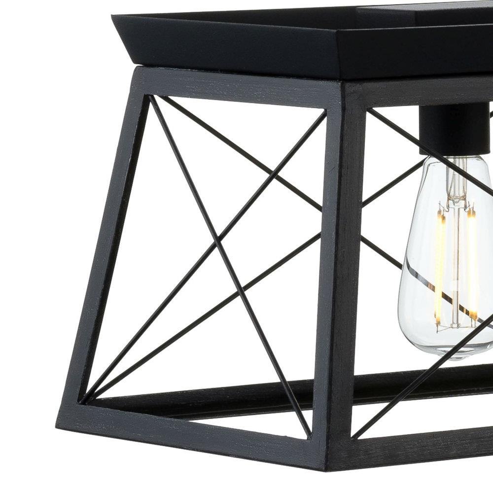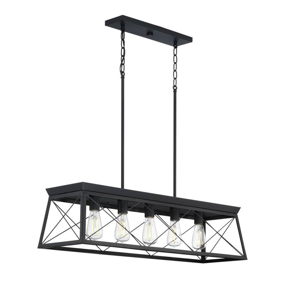 The Briarwood collection features a classic pattern commonly found on barn or farmhouse doors and gates. The simple geometric form features a faux-painted wood enclosure to frame vintage-style light bulbs. A rich Oak and Antique Bronze finish combination. Five-Light linear chandelier.