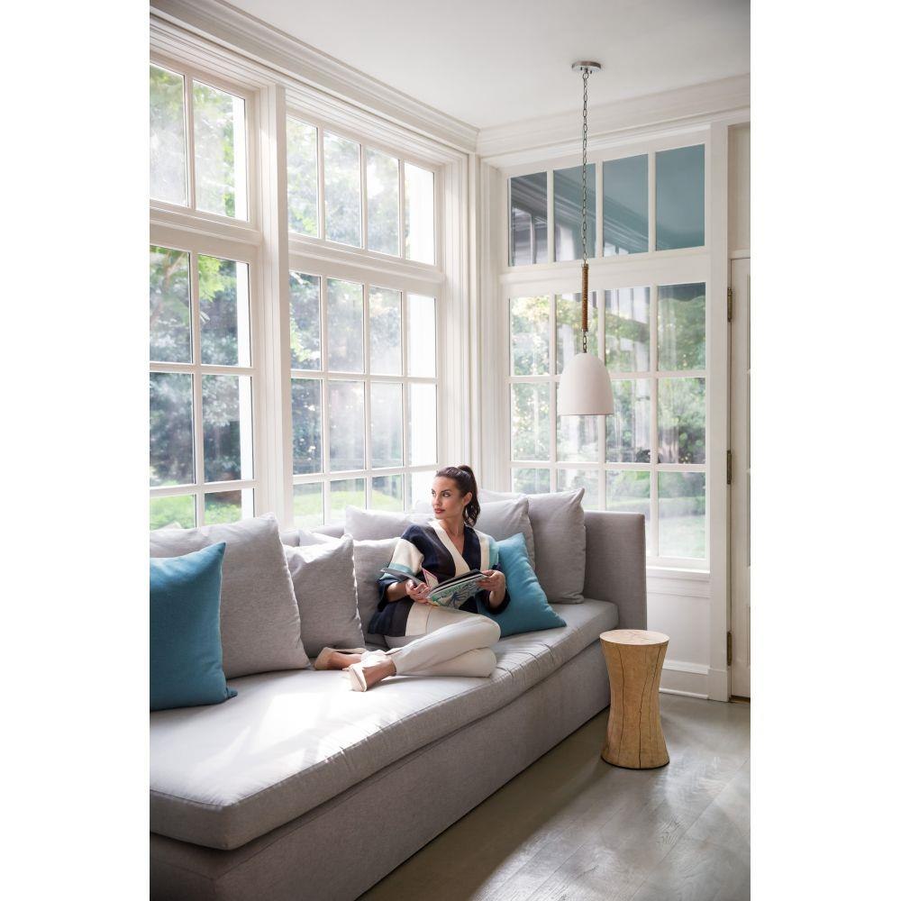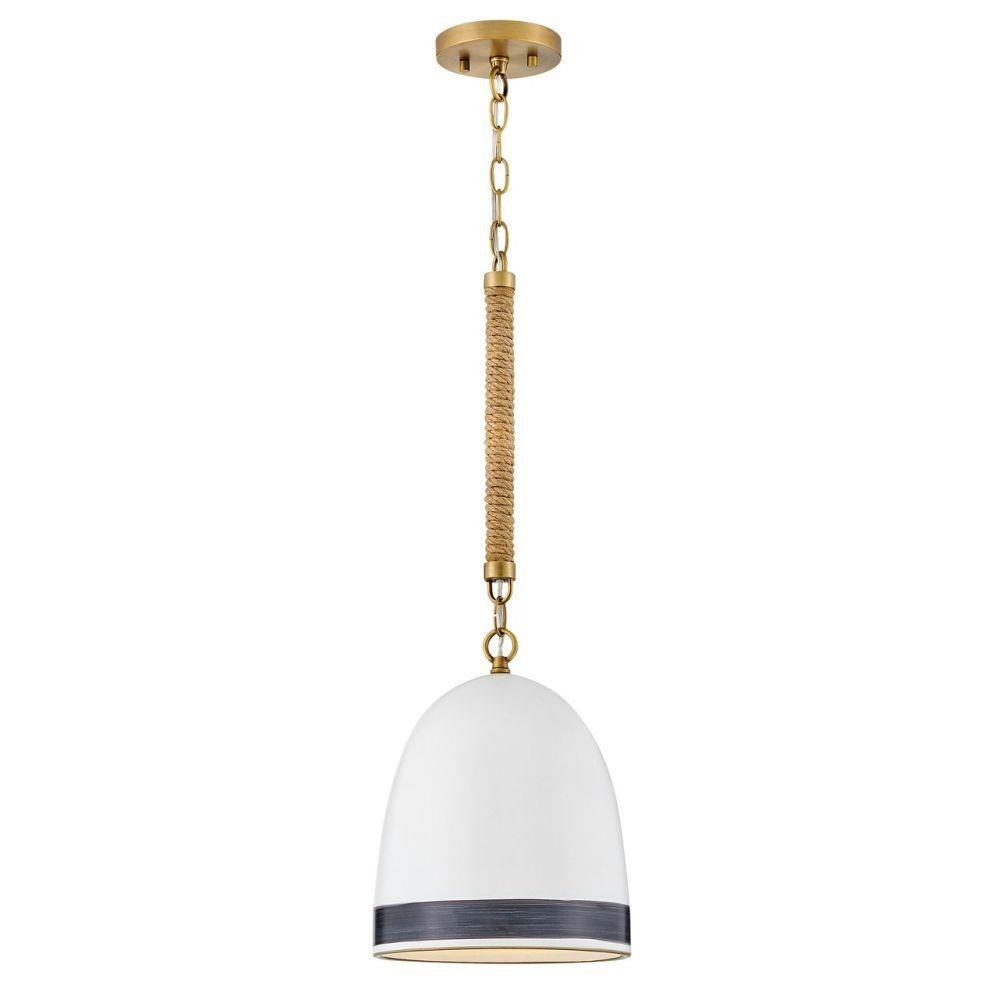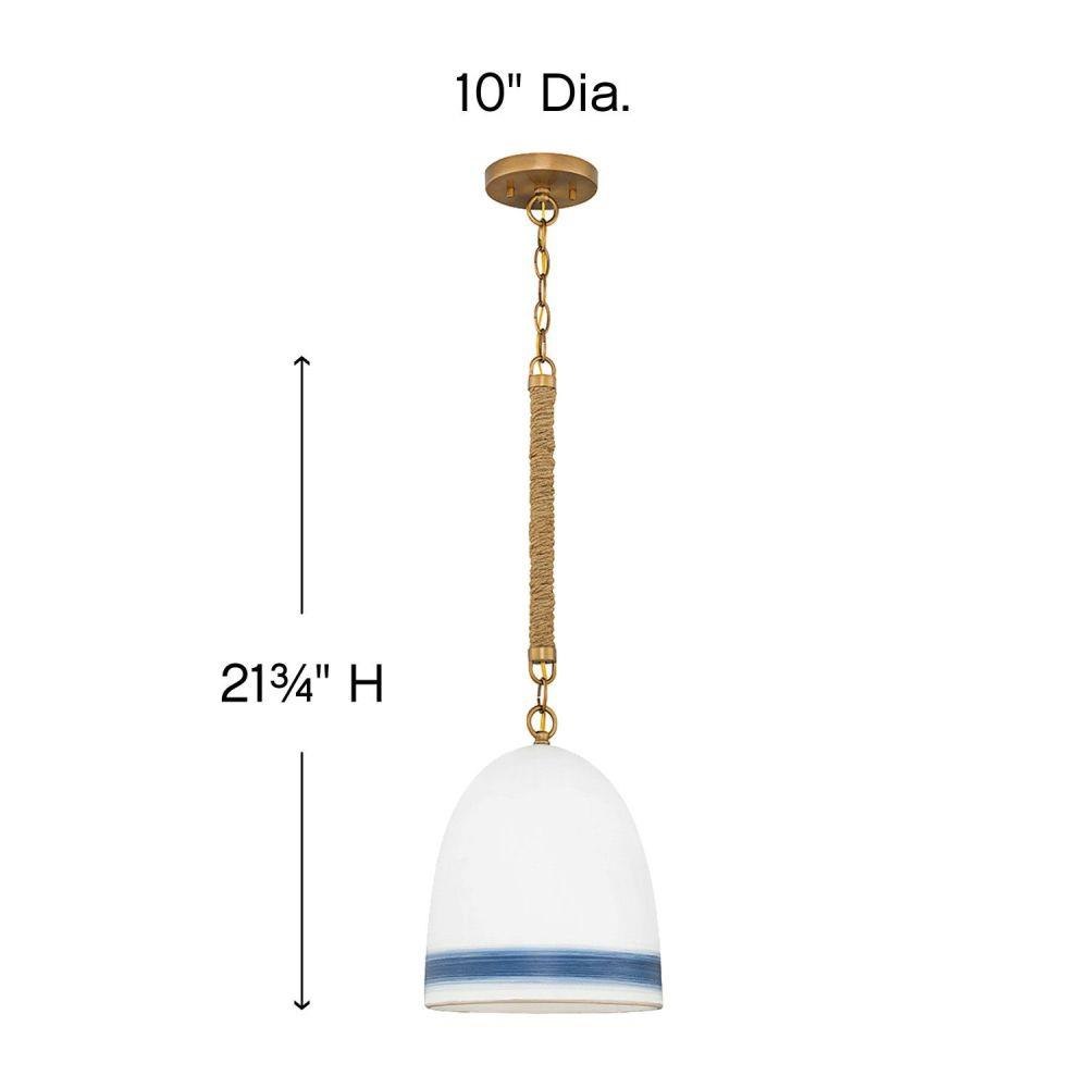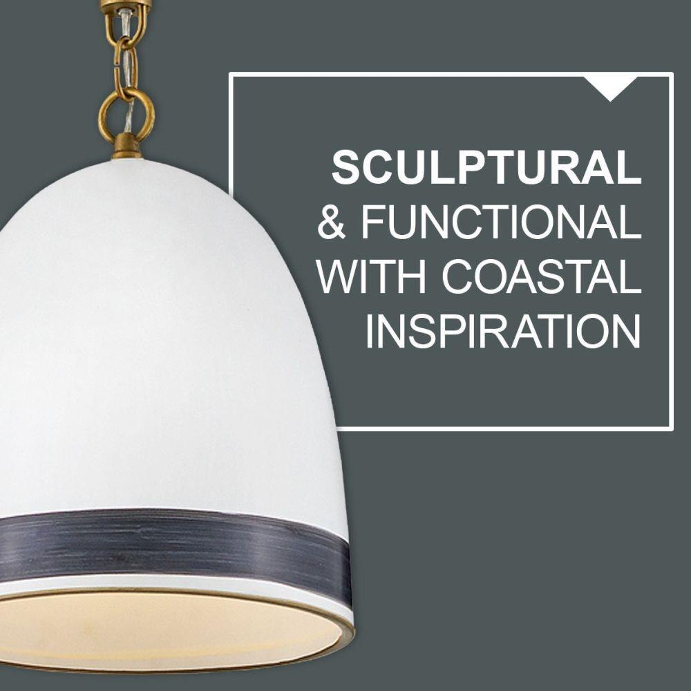Fresh and welcoming, Nash merges sculptural and functional features with coastal inspiration. A hand-painted stripe and contrasting tipping complete the thrown ceramic shade. Combined with a thick jute rope, the details of Nash bring organic warmth and texture to any space.Suitable for use in dry (indoor) locations as defined by NEC and CEC. Meets United States UL Underwriters Laboratories & CSA Canadian Standards Association Product Safety Standards / This chain or cable hung fixture may be installed on any sloped ceiling / Classic matte brushed nickel finish / Chic, modern design with refined details adds a fresh, minimalist elegance