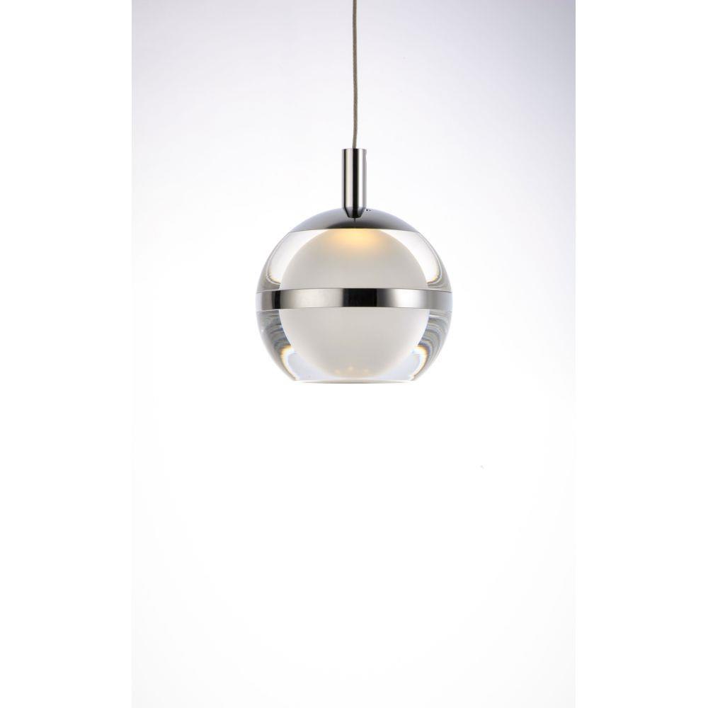 Orbs of crystal Clear acrylic are trimmed with a metal band and frosted inside for excellent light diffusion. The bottom is dimpled for a unique optical effect.
