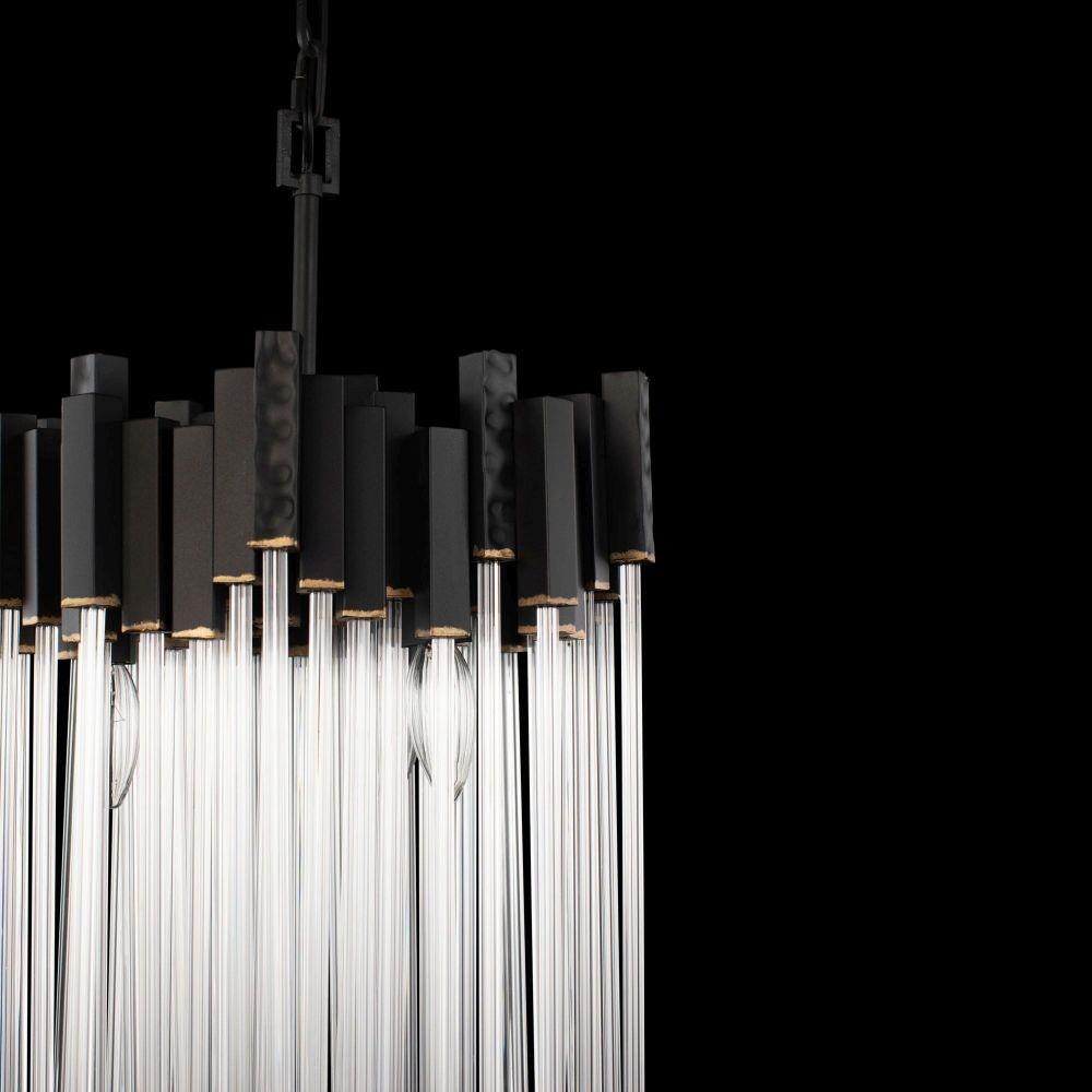 The Matrix Collection redefines lighting with bold geometry and shimmering detail. Featuring hand-forged recycled steel frames paired with hand-cut fluted glass rods, Matrix creates a sophisticated play of light and shadow. Offered in Havana Gold or Matte Black with French Gold accents, this collection embodies modern luxury with an eco-friendly soul.