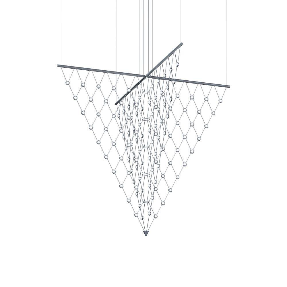 LED hubs connected in linear strands of various lengths are suspended to form dramatically powerful luminance within a vertical space. Available in a variety of sizes and configurations, with lens options of crystal facets or soft white, Constellation Andromeda can also be customized for your project.